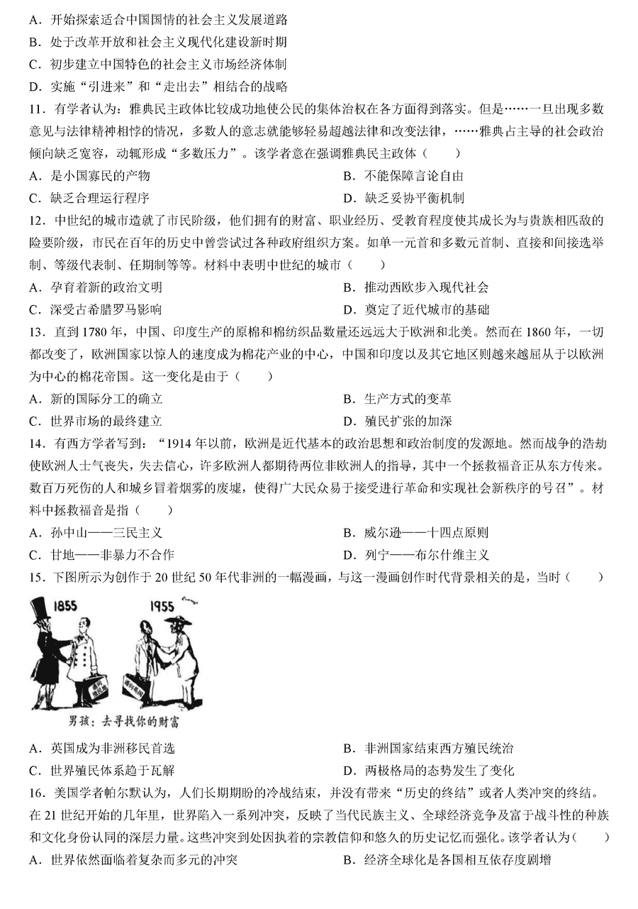 历史试题及答案解析