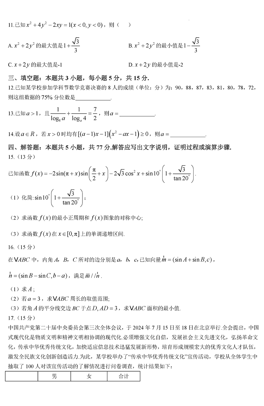 辽宁七校协作体2025届高三上学期11月期中数学试题及答案