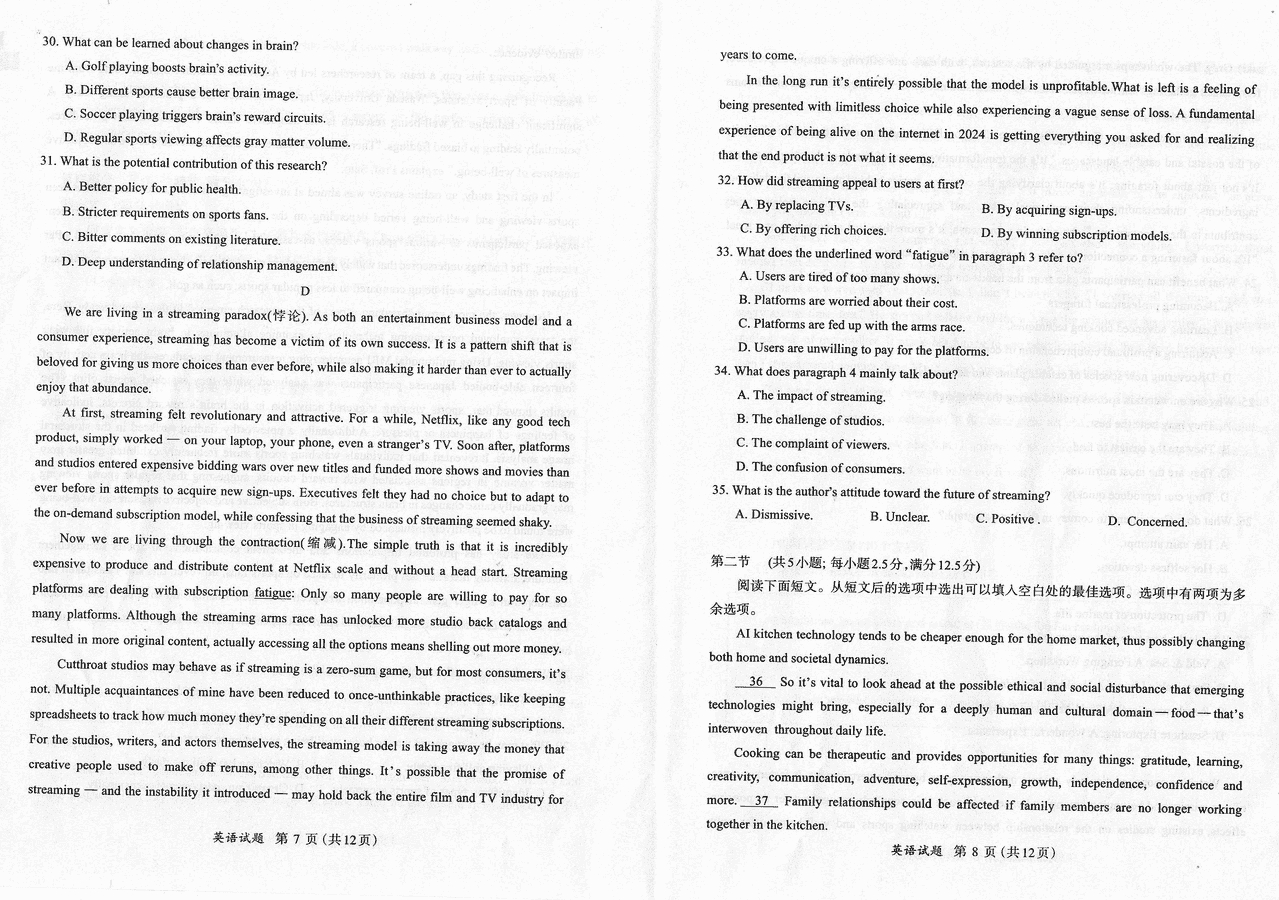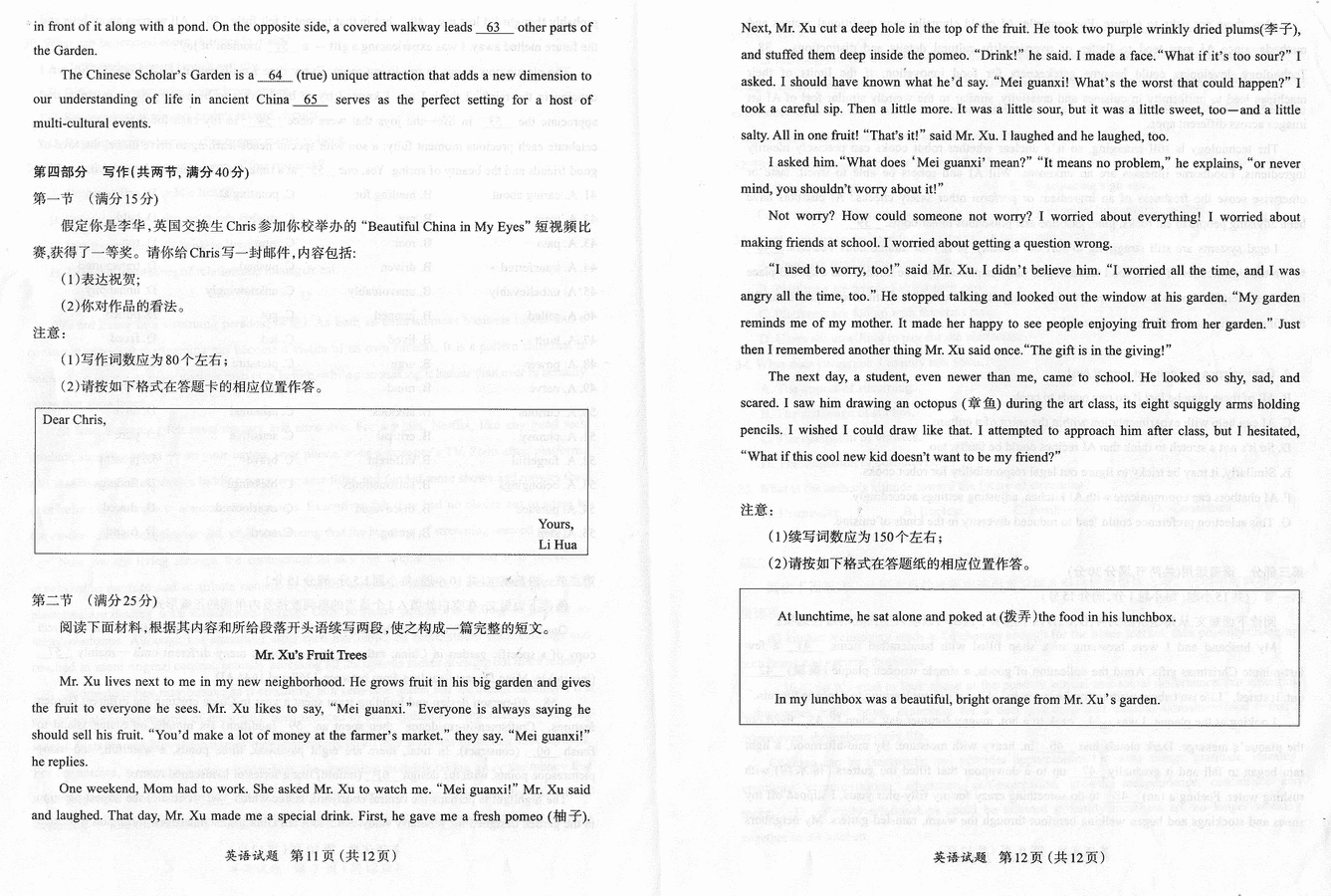福建 英语试题