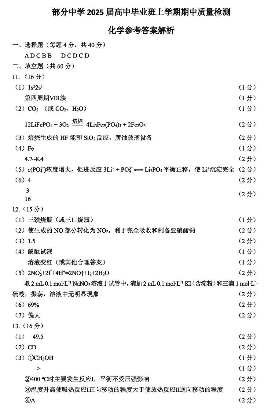 福建名校联考2025届高三11月期中质检化学考试已于近日开考,为方便考生考后及时查看考试情况,查漏补缺、弥补不足,本文整理了试题答案解析相关信息!