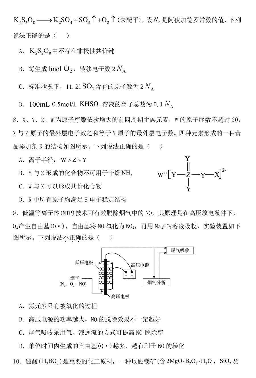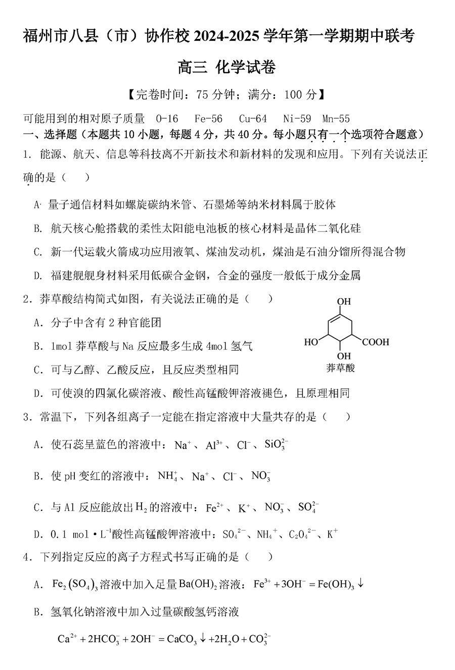 福州八县市协作校2025届高三上学期期中联考化学试题及答案
