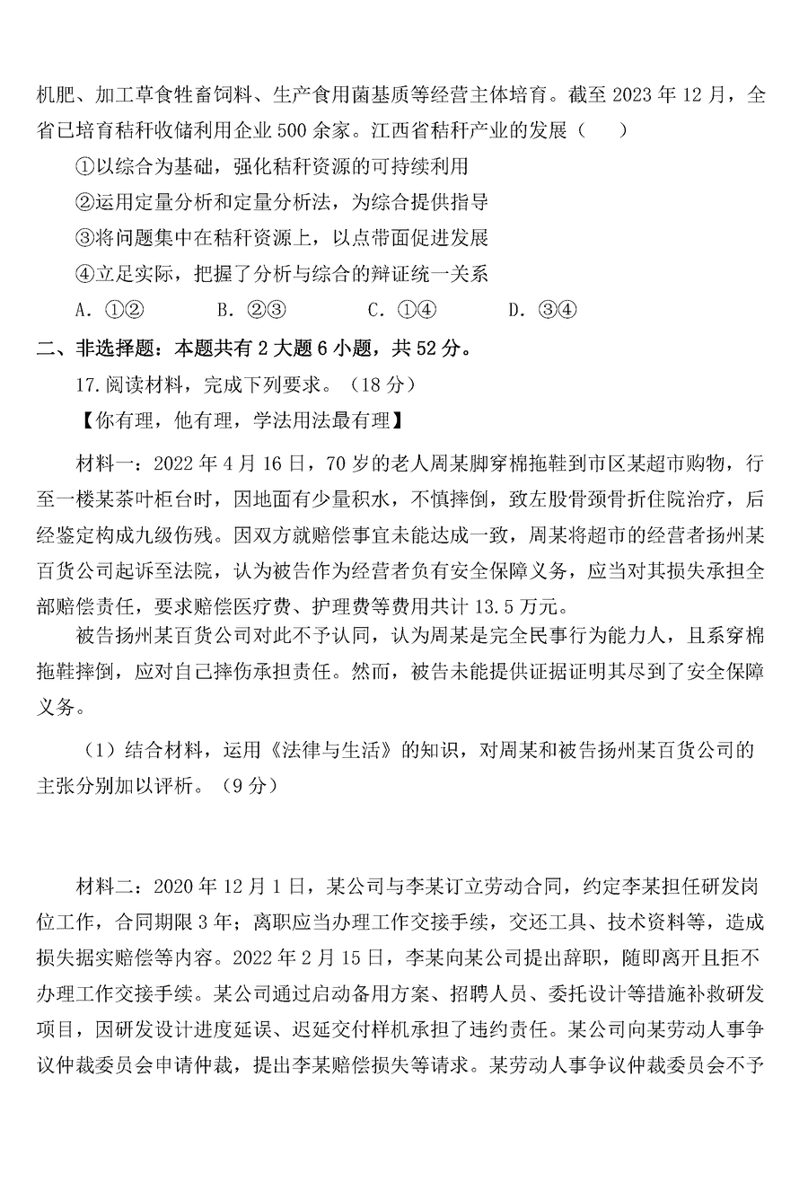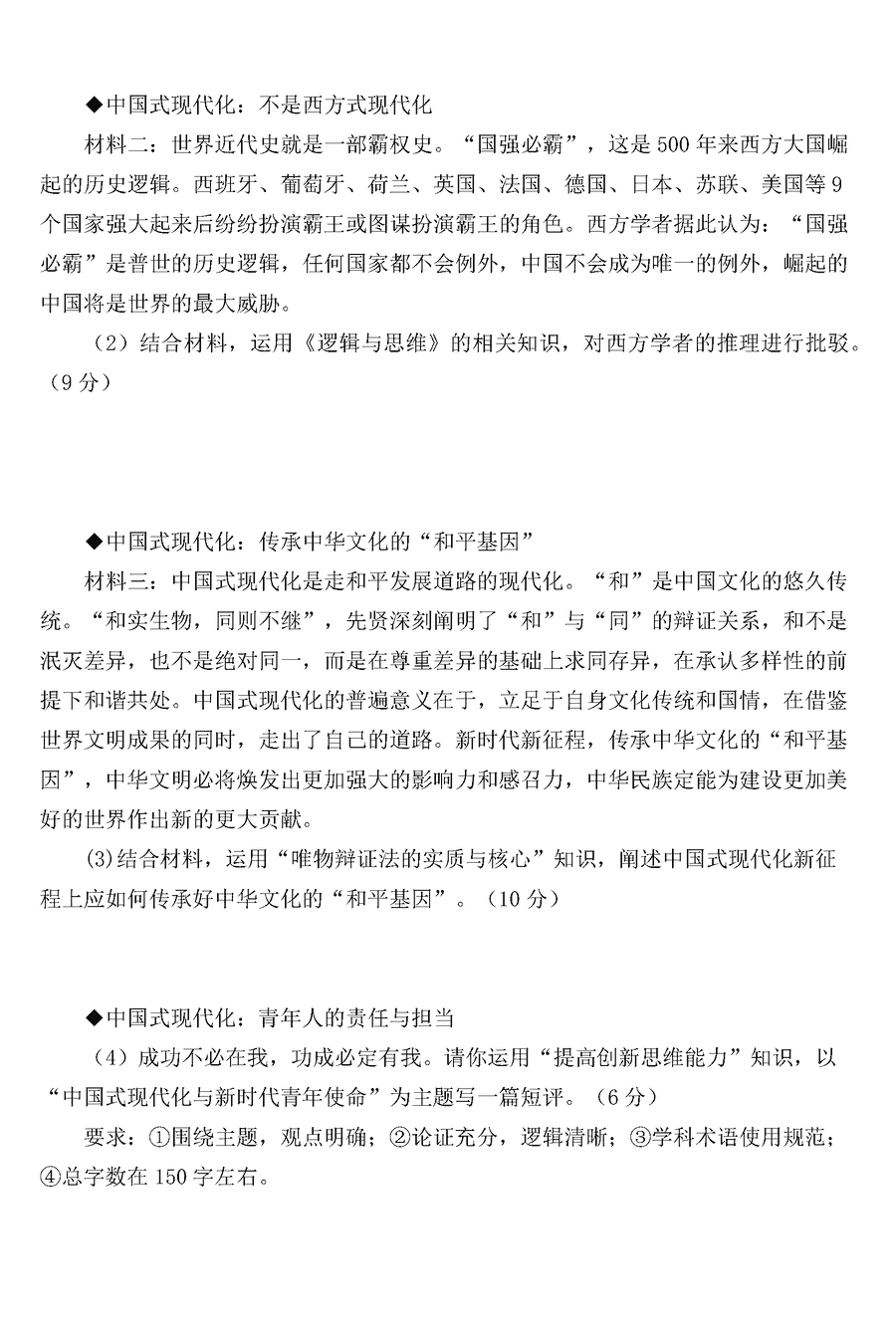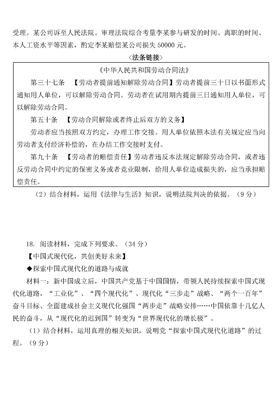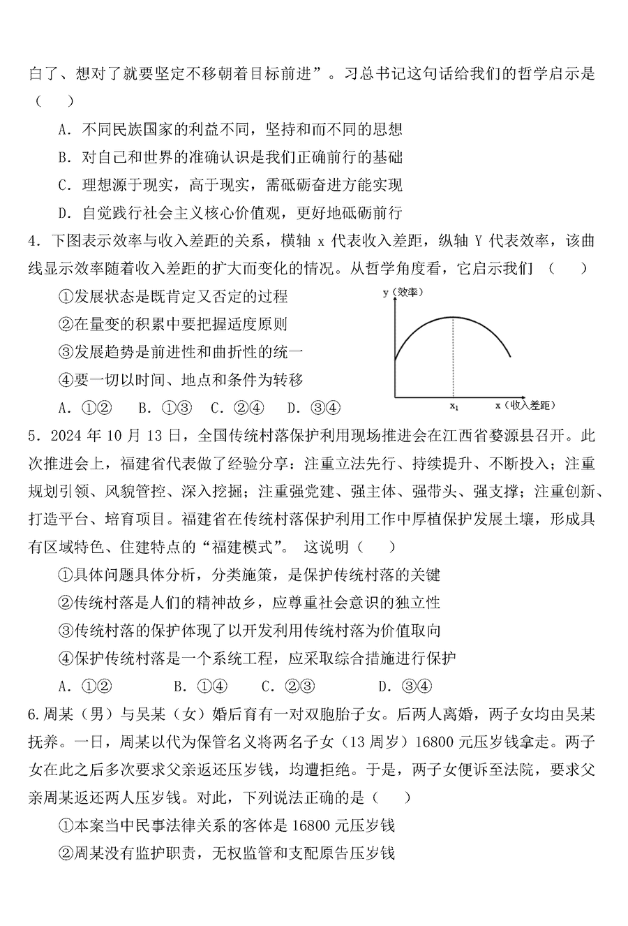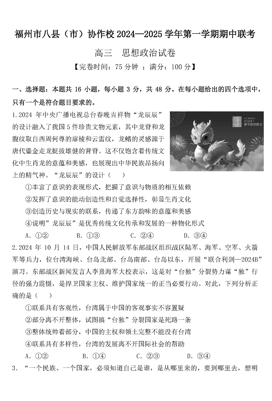 福州八县市协作校2025届高三上学期期中联考政治试题及答案