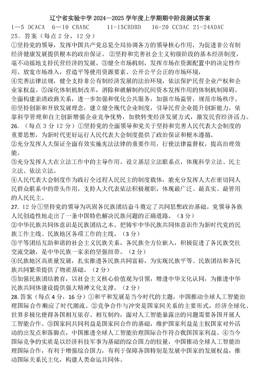 辽宁省实验中学2024-2025学年高三上学期期中政治考试已于近日开考,为方便考生考后及时查看考试情况,查漏补缺、弥补不足,本文整理了试题答案解析相关信息!