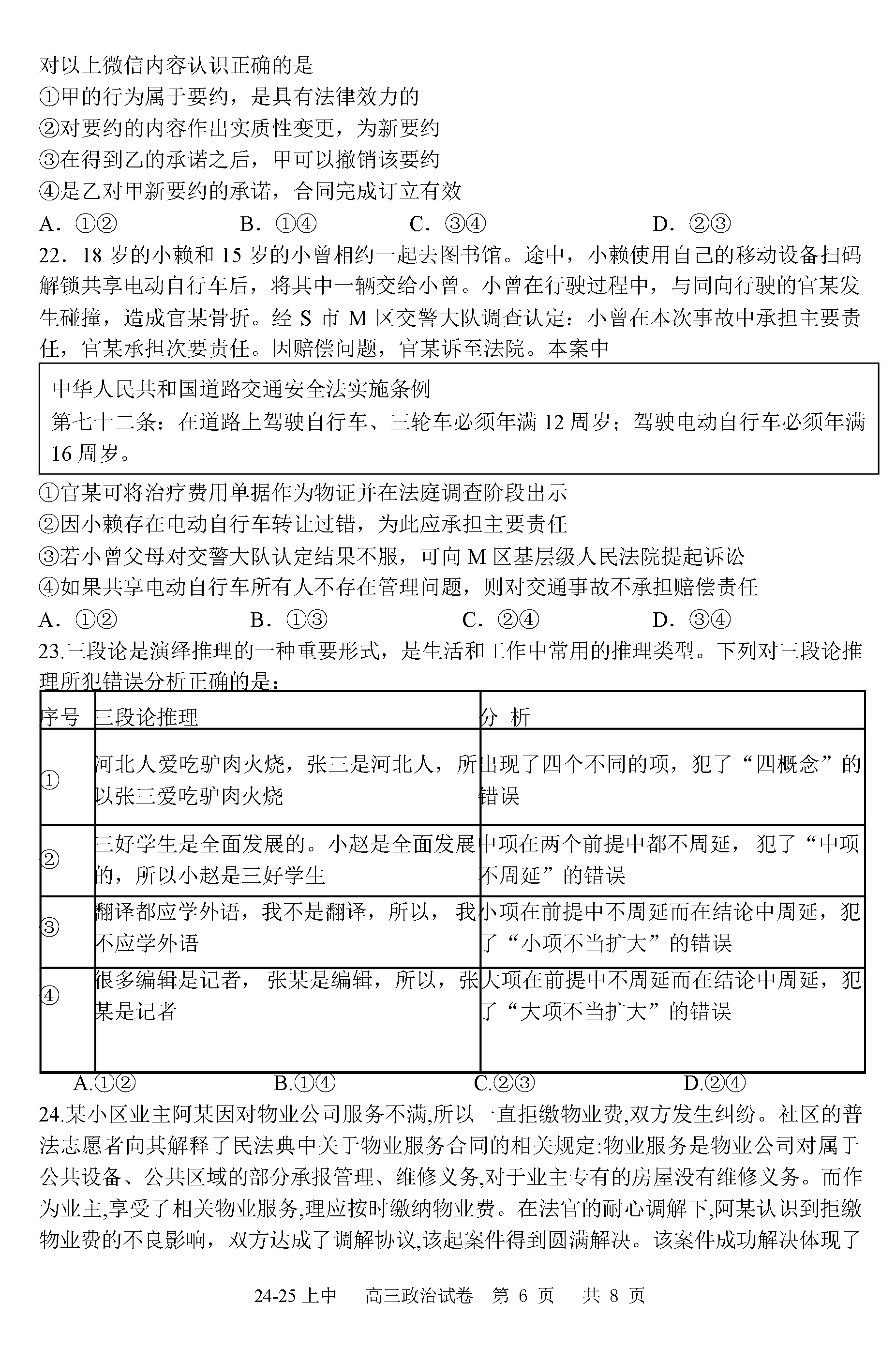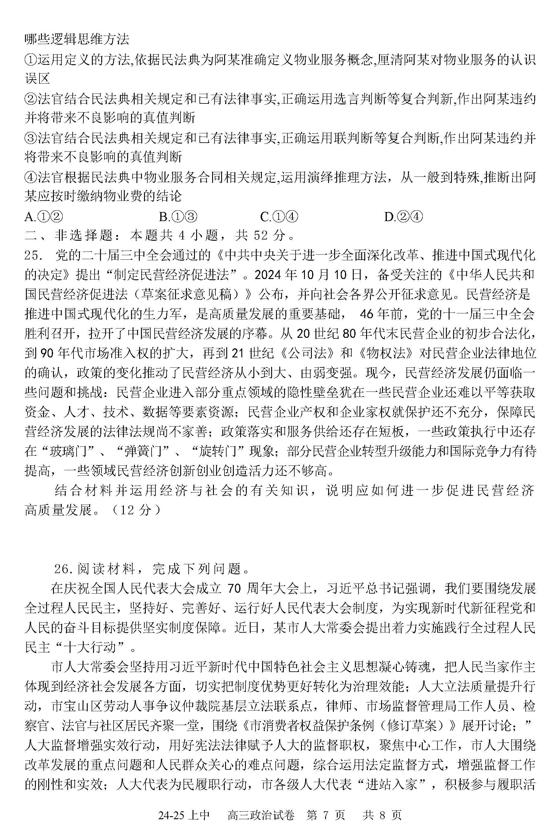 辽宁实验中学2024-2025学年高三上学期期中政治试题及答案