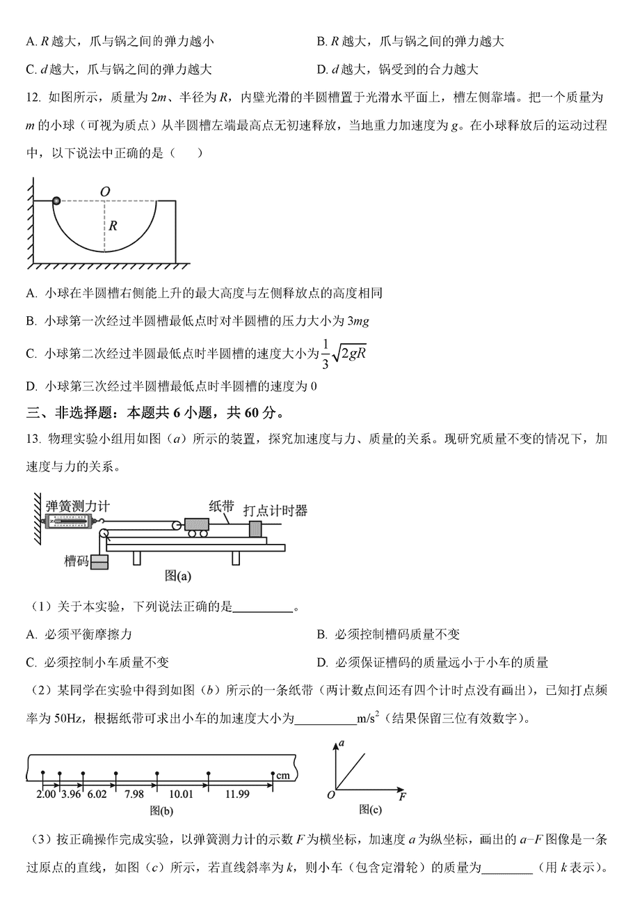 山东济宁2024-2025学年高三上学期期中物理试题及答案