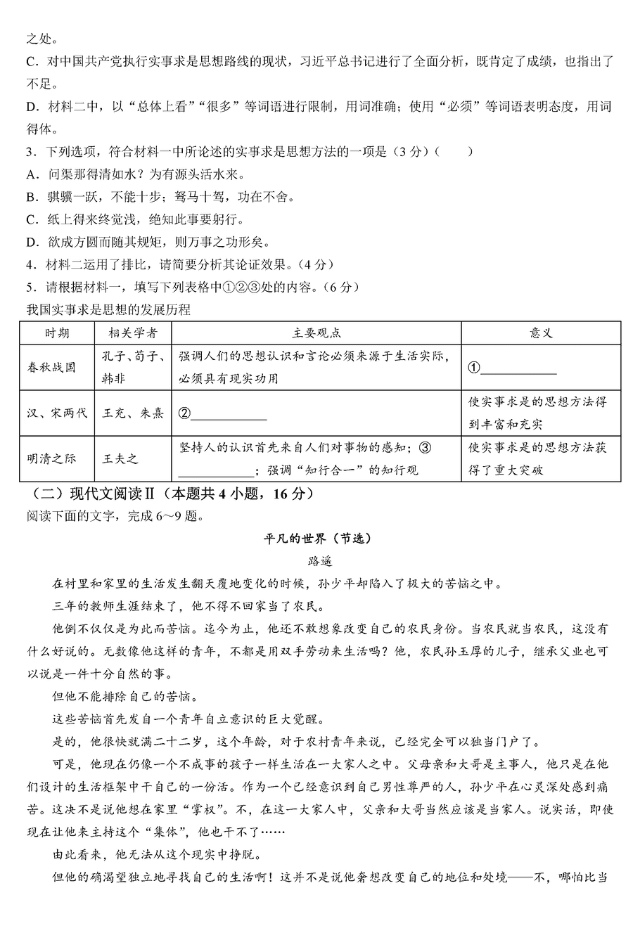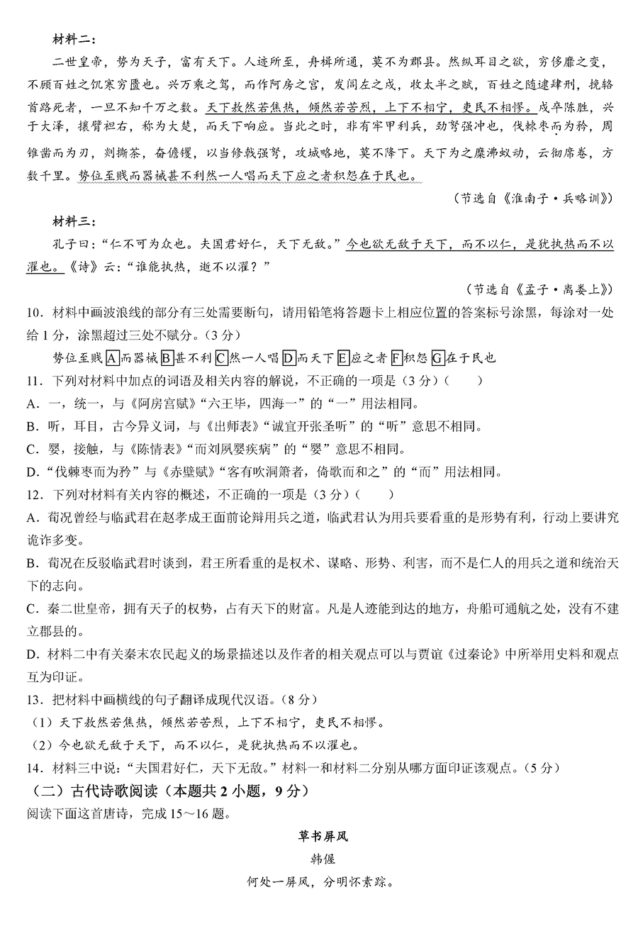 山东 语文试题
