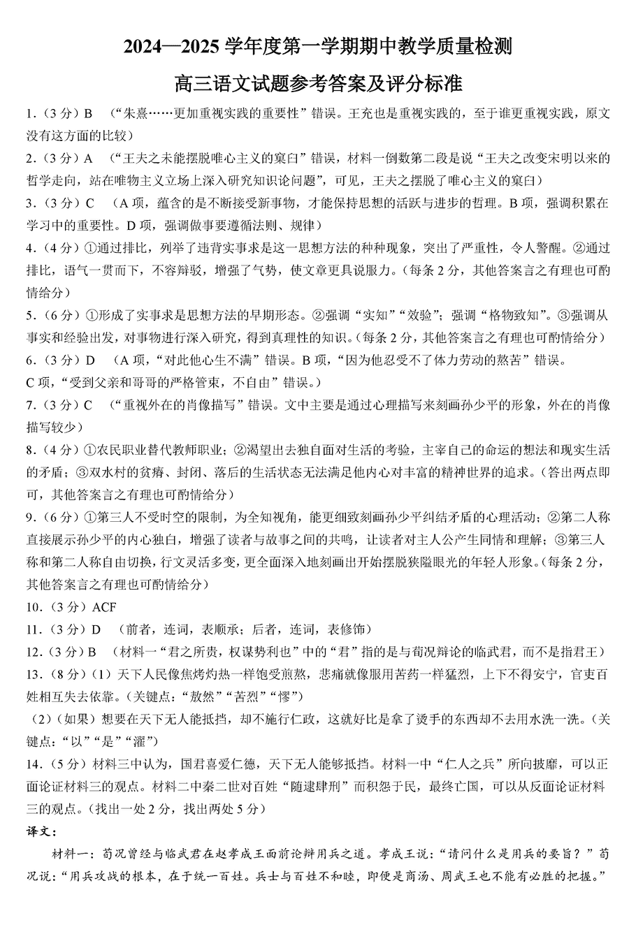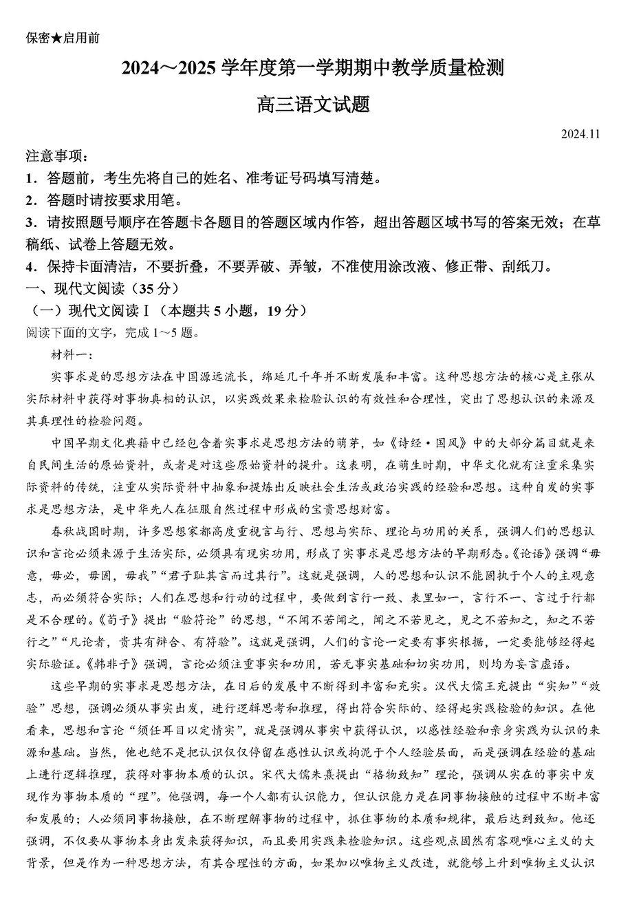 山东济宁2024-2025学年高三上学期期中语文试题及答案