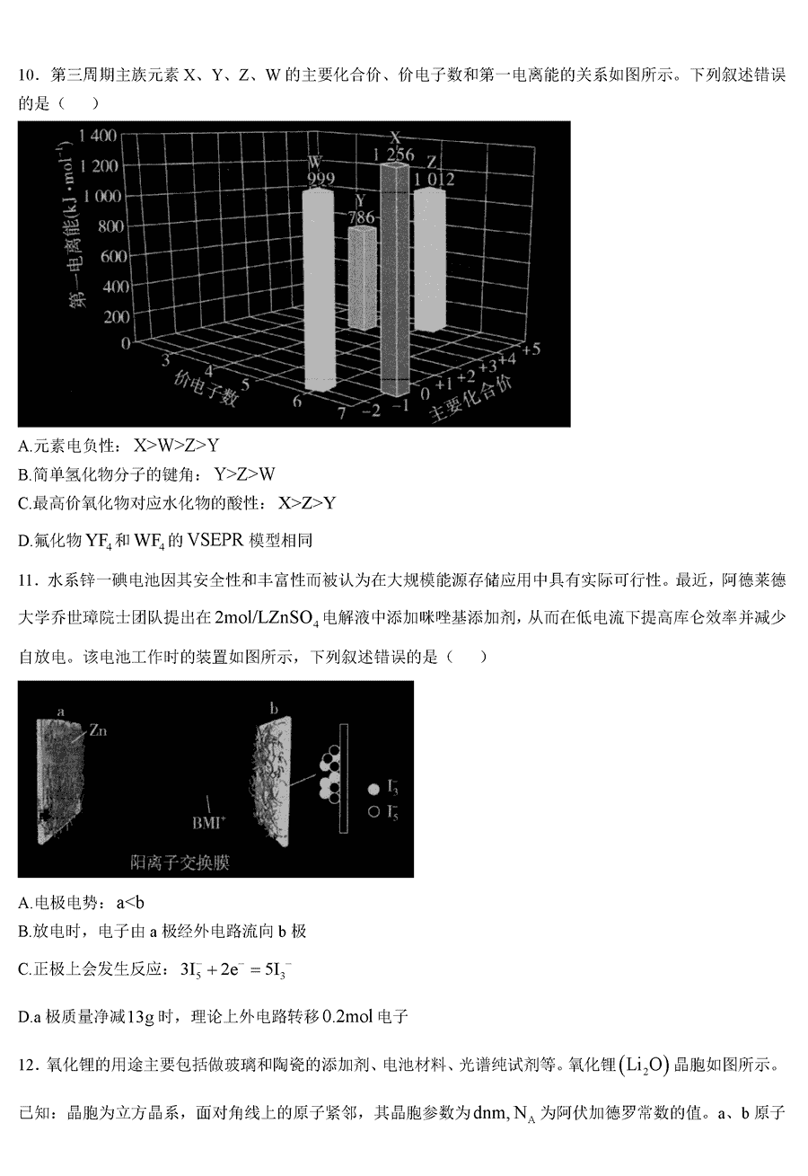 陕西汉中2024-2025学年高三上学期11月期中化学试题及答案