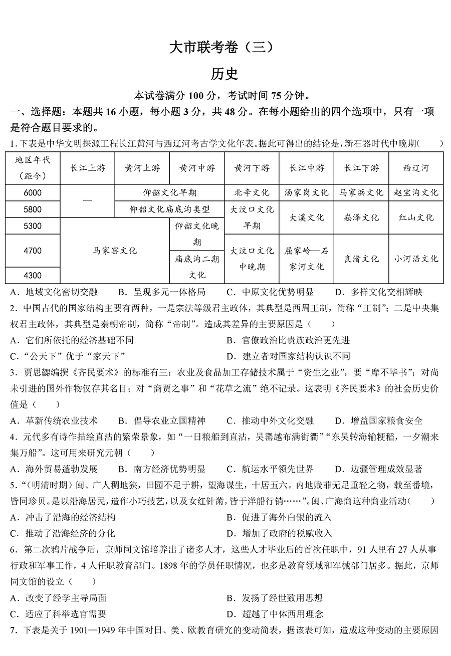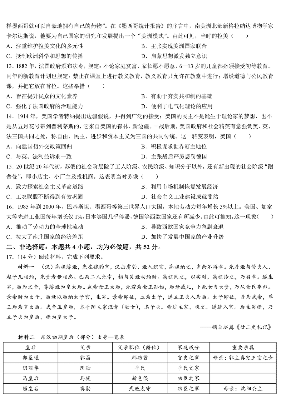 陕西汉中2024-2025学年高三上学期11月期中历史试题及答案