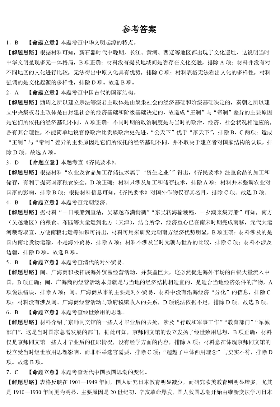 陕西汉中2024-2025学年高三上学期11月期中历史考试已于近日开考,为方便考生考后及时查看考试情况,查漏补缺、弥补不足,本文整理了试题答案解析相关信息!