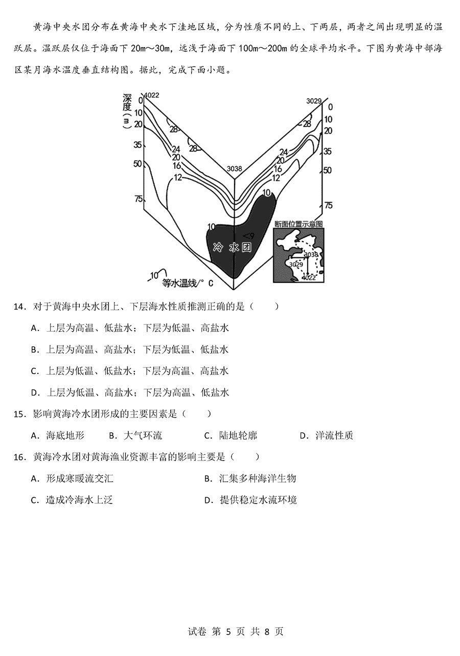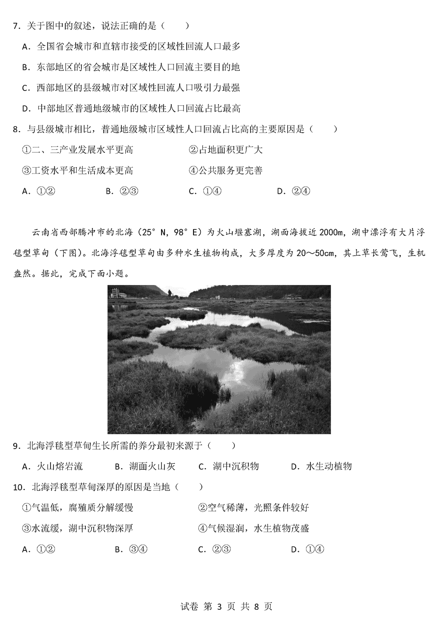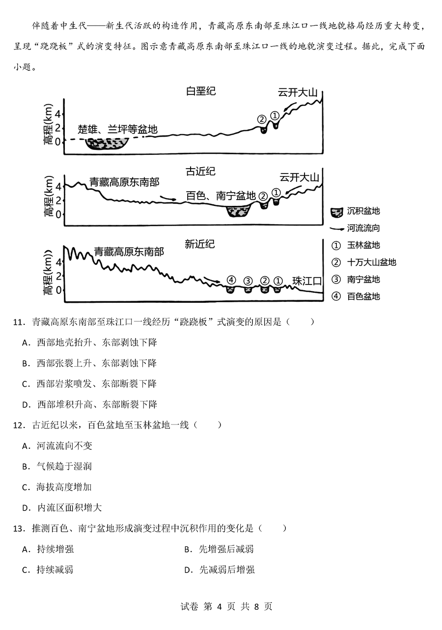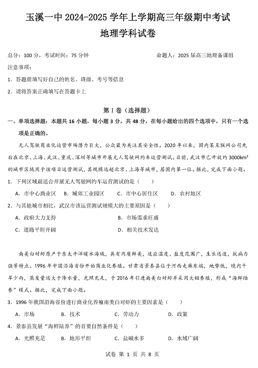 玉溪一中2024-2025学年高三上学期期中地理试题及答案