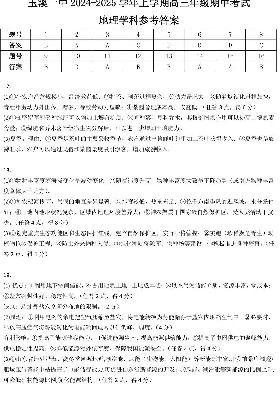 玉溪一中2024-2025学年高三上学期期中地理考试已于近日开考,为方便考生考后及时查看考试情况,查漏补缺、弥补不足,本文整理了试题答案解析相关信息!