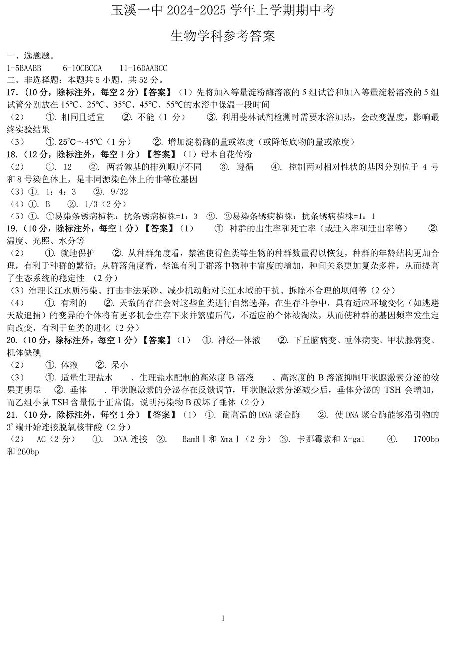 玉溪一中2024-2025学年高三上学期期中生物考试已于近日开考,为方便考生考后及时查看考试情况,查漏补缺、弥补不足,本文整理了试题答案解析相关信息!