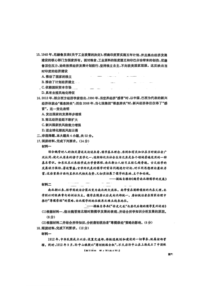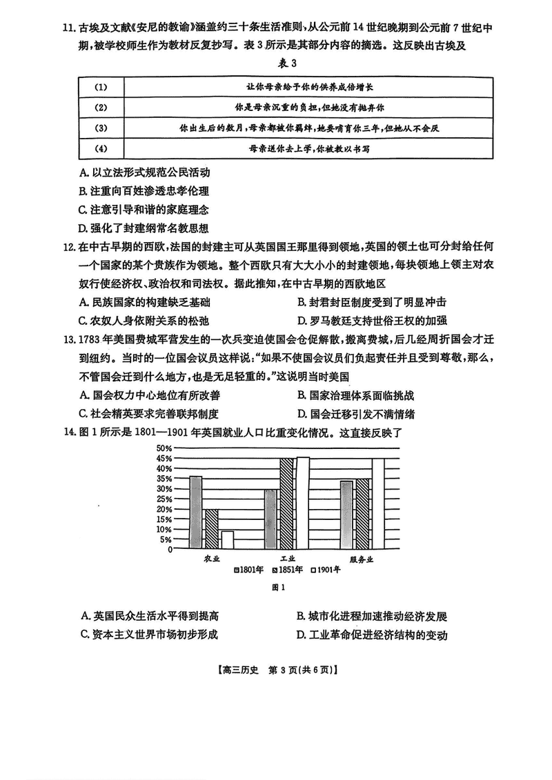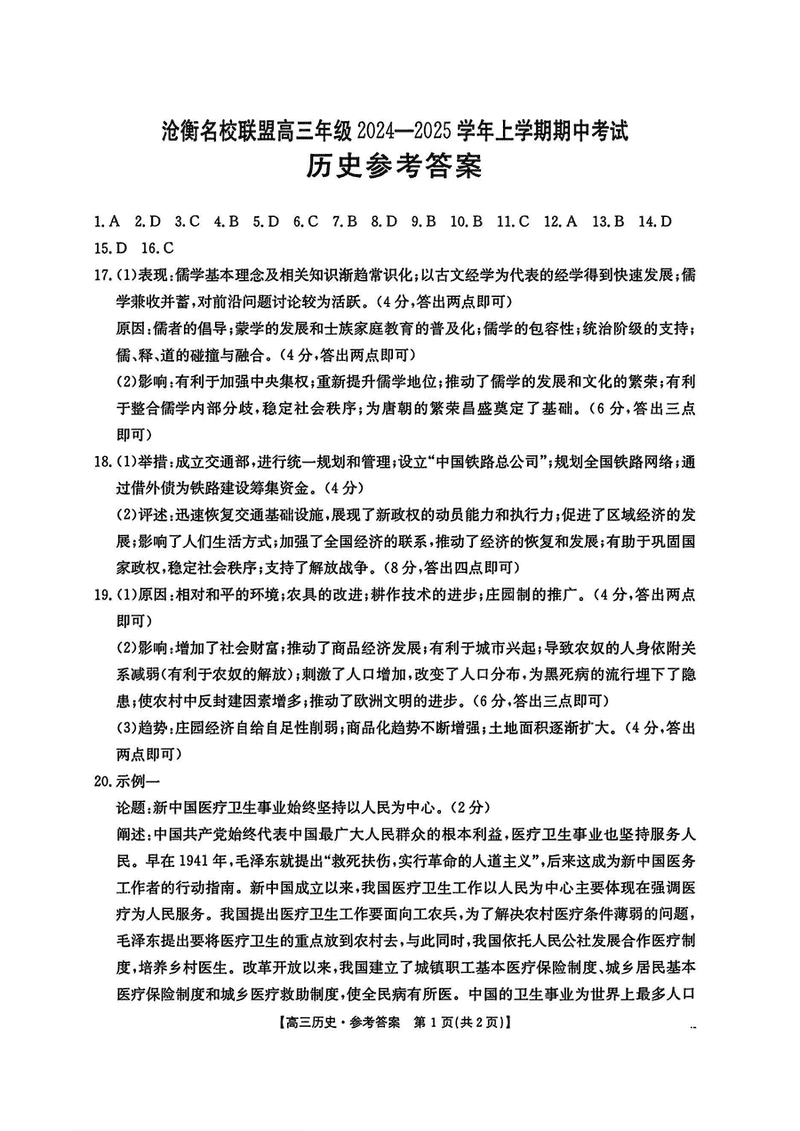 河北沧衡名校联盟2025届高三上学期11月期中历史试题及答案
