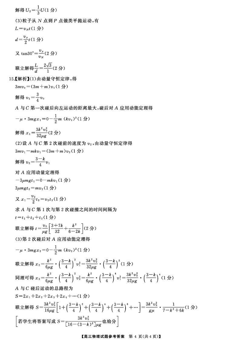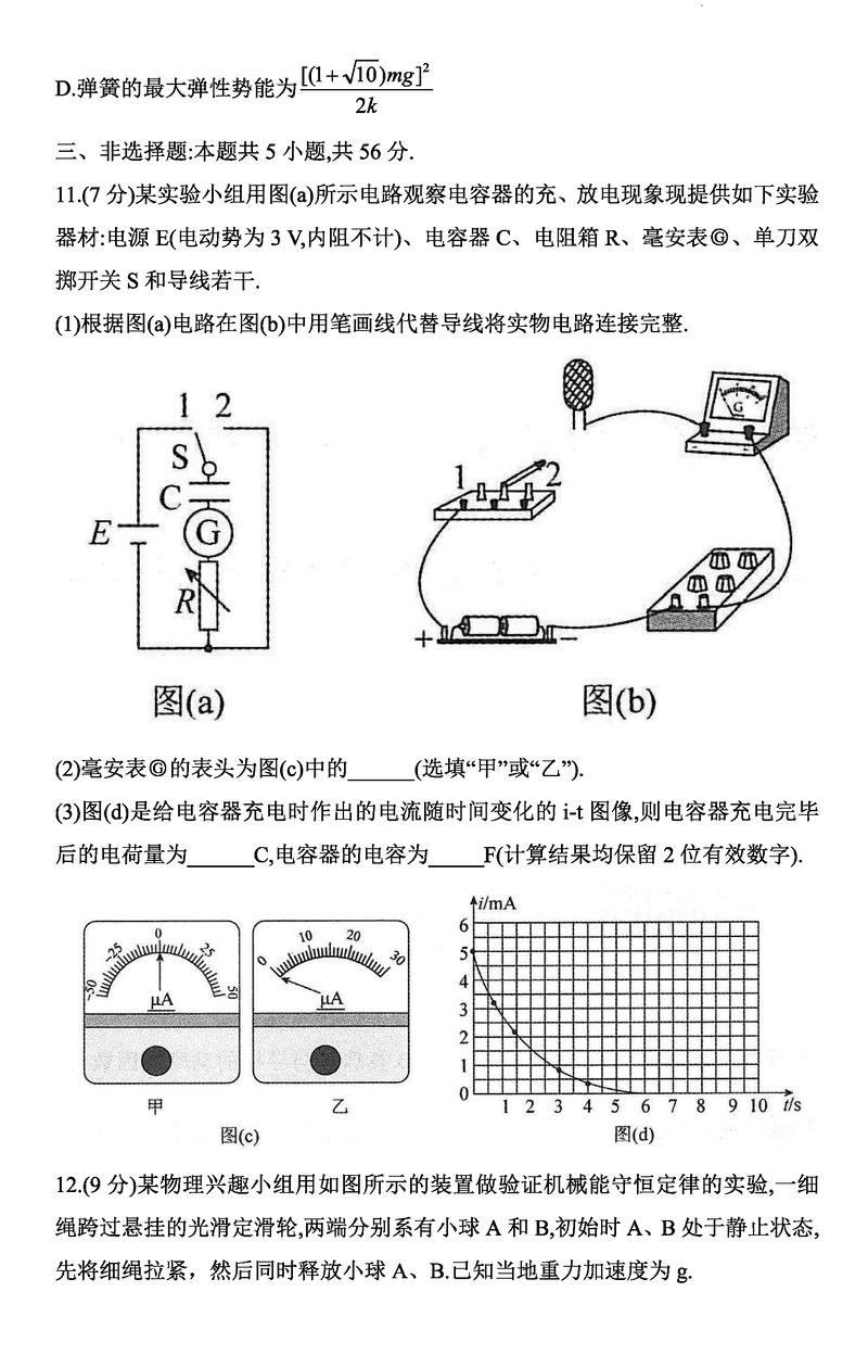 湖南三湘名校教育联盟2025届高三第二次大联考物理试题及答案