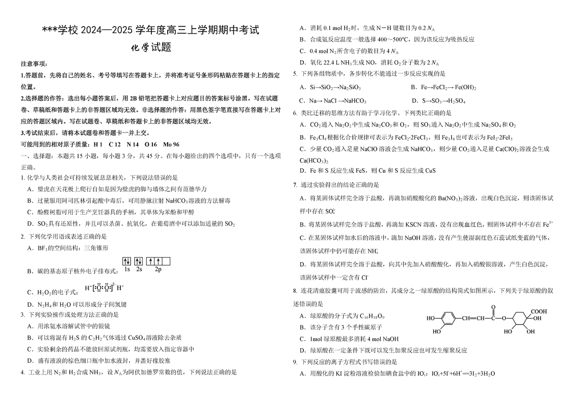 哈师大附中2025届高三上学期期中化学试题及答案 时间:2024-11-21 01:56 黑龙江 理综试题 哈师大附中2025届高三上学期期中化学考试已于近日开考,为方便考生考后及时查看考试情况,查漏补缺、弥补不足,本文整理了试题答案解析相关信息! 汇总:哈师大附中2025届高三上学期期中试题及答案汇总 化学试题及答案解析