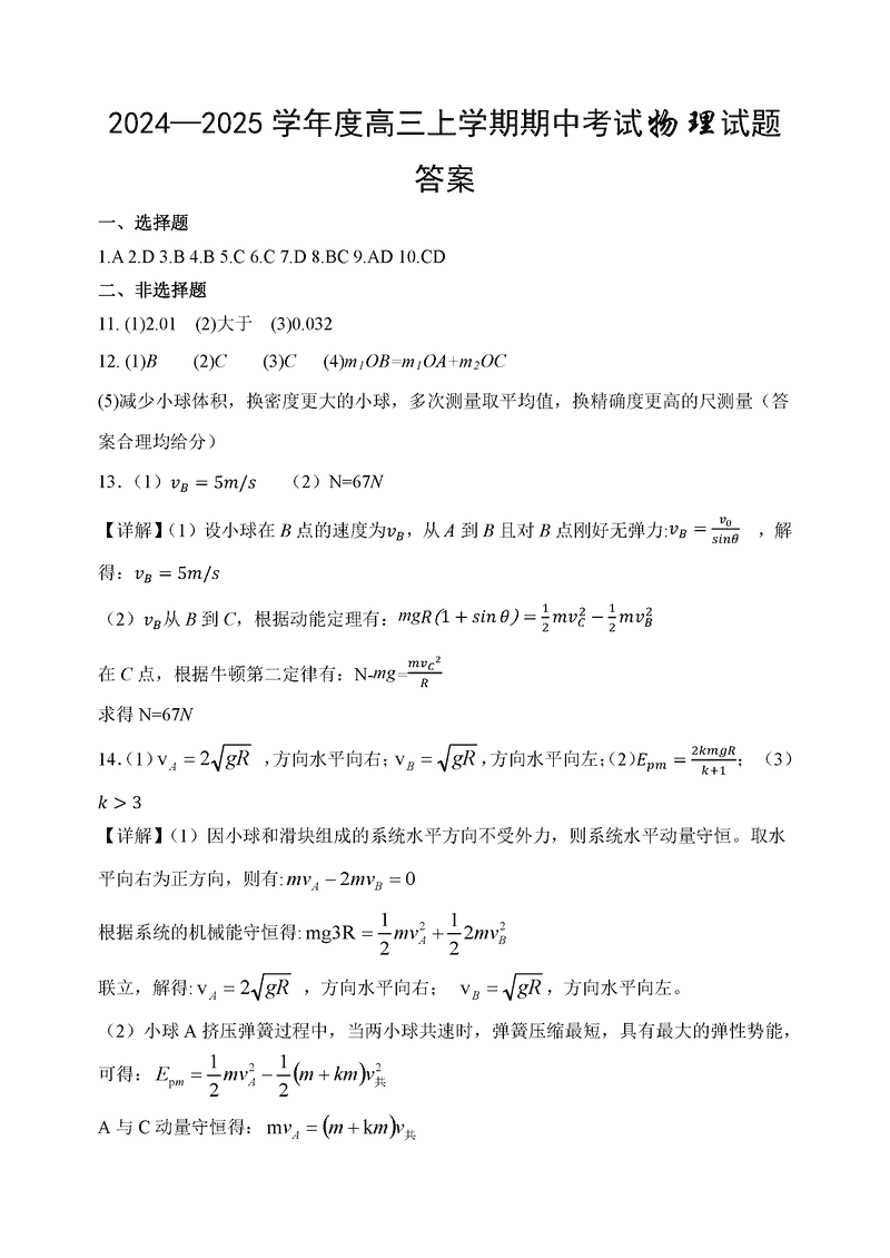哈师大附中2025届高三上学期期中物理试题及答案 时间:2024-11-21 01:57 黑龙江 理综试题 哈师大附中2025届高三上学期期中物理考试已于近日开考,为方便考生考后及时查看考试情况,查漏补缺、弥补不足,本文整理了试题答案解析相关信息! 汇总:哈师大附中2025届高三上学期期中试题及答案汇总 物理试题及答案解析