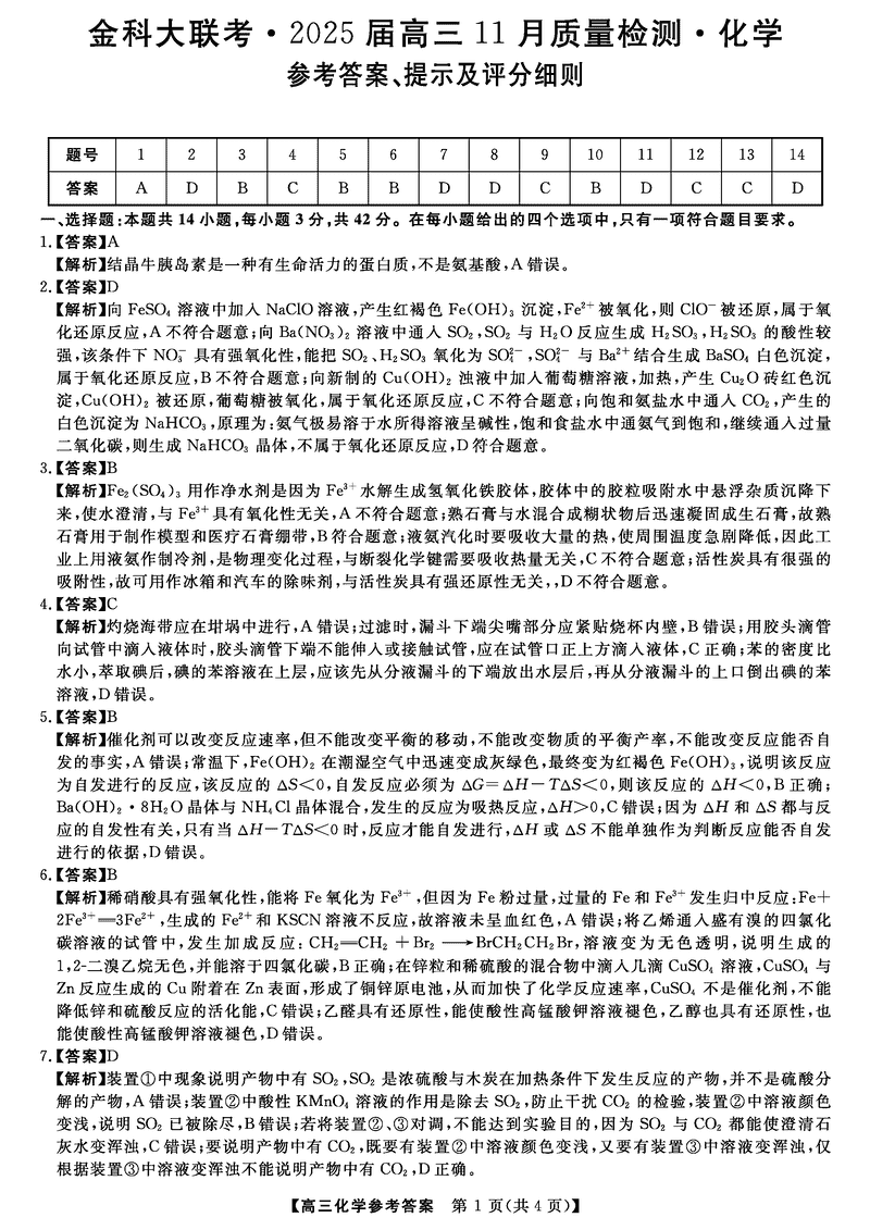 河南金科新未来大联考2025届高三上11月质检化学考试已于近日开考,为方便考生考后及时查看考试情况,查漏补缺、弥补不足,本文整理了试题答案解析相关信息!