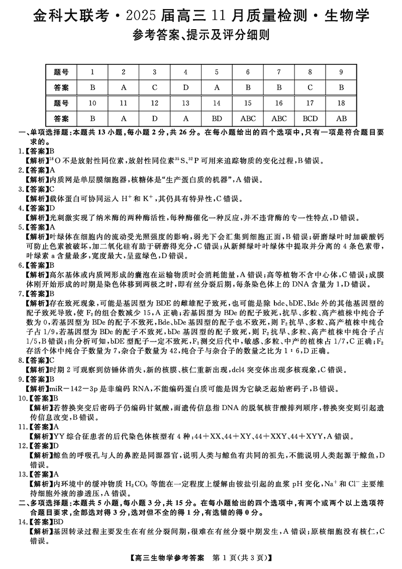 河南金科新未来大联考2025届高三上11月质检生物考试已于近日开考,为方便考生考后及时查看考试情况,查漏补缺、弥补不足,本文整理了试题答案解析相关信息!
