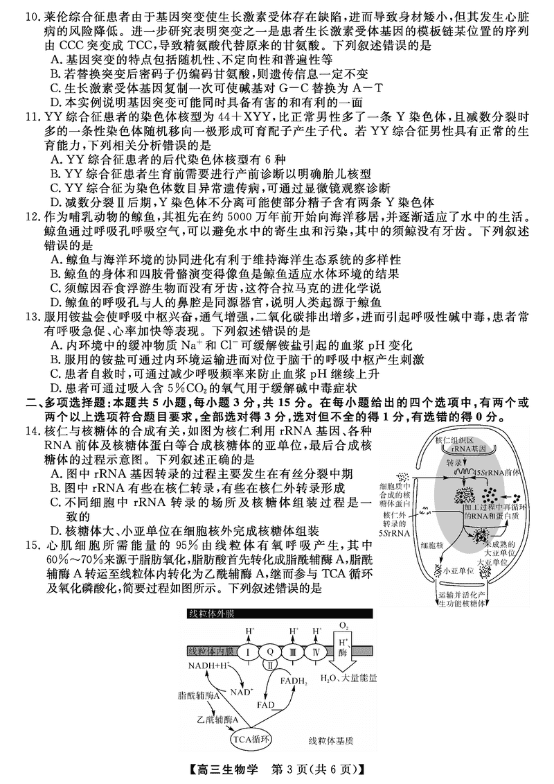 河南金科新未来大联考2025届高三上11月质检生物试题及答案