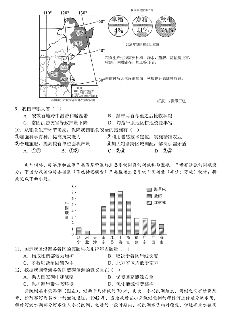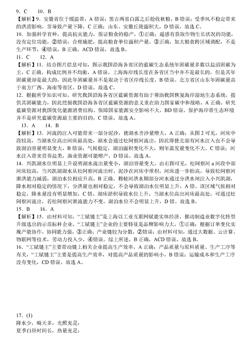 地理试题及答案解析