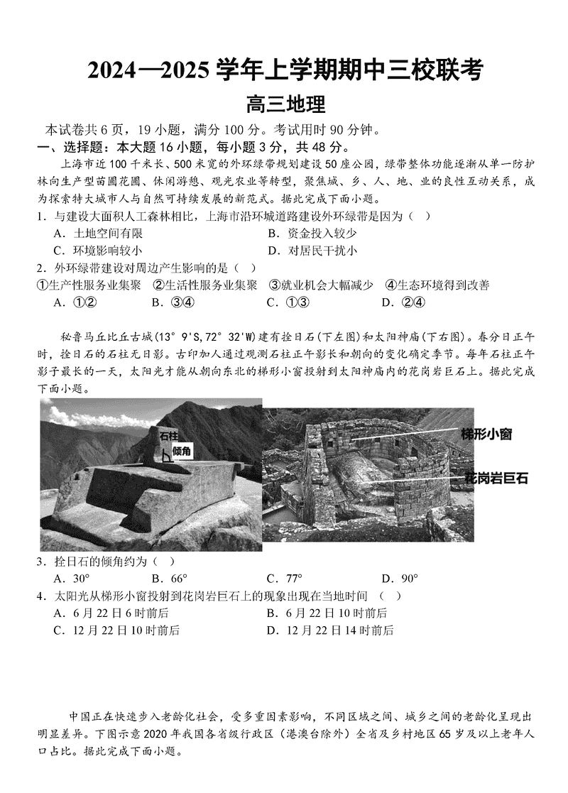 广州三校2024-2025学年高三上学期期中联考地理试题及答案