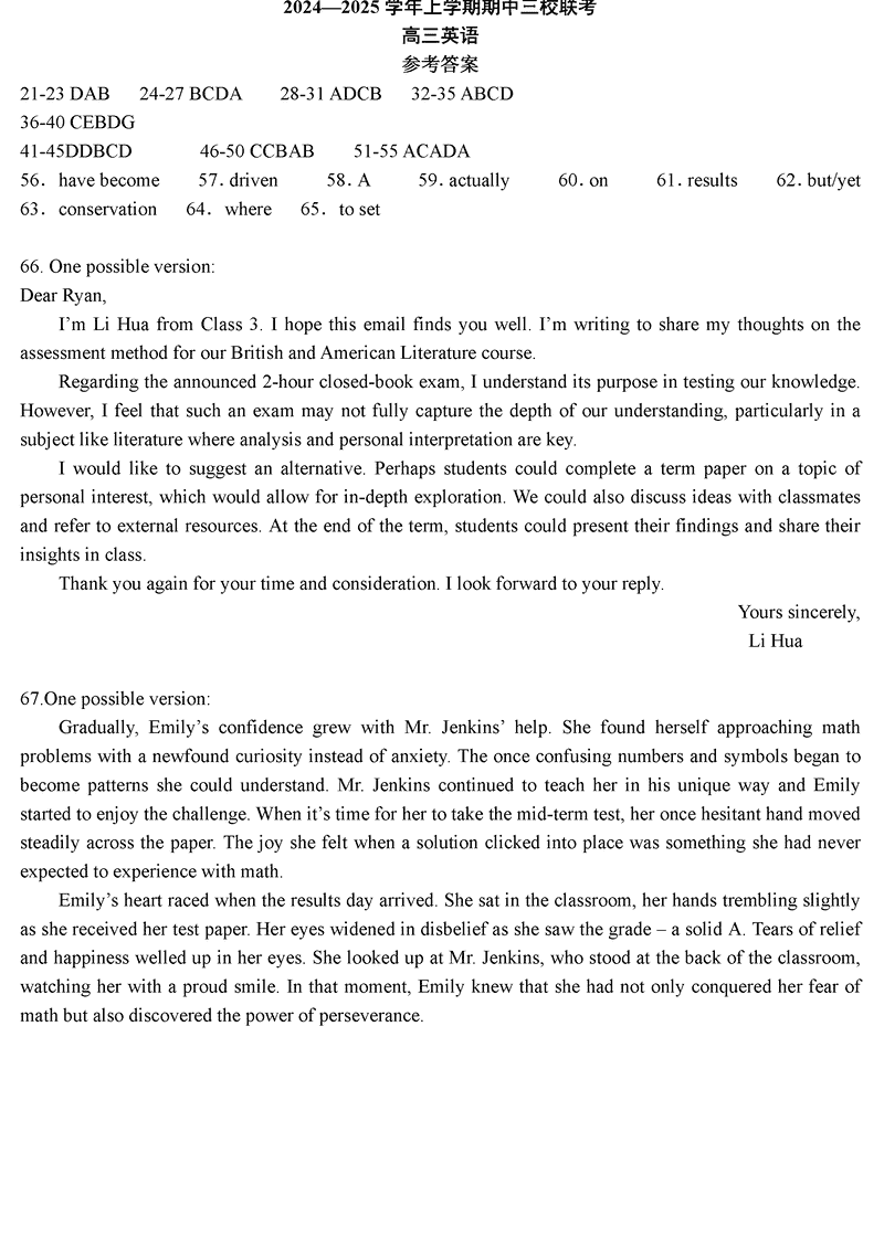 广州三校2024-2025学年高三上学期期中联考英语试题及答案