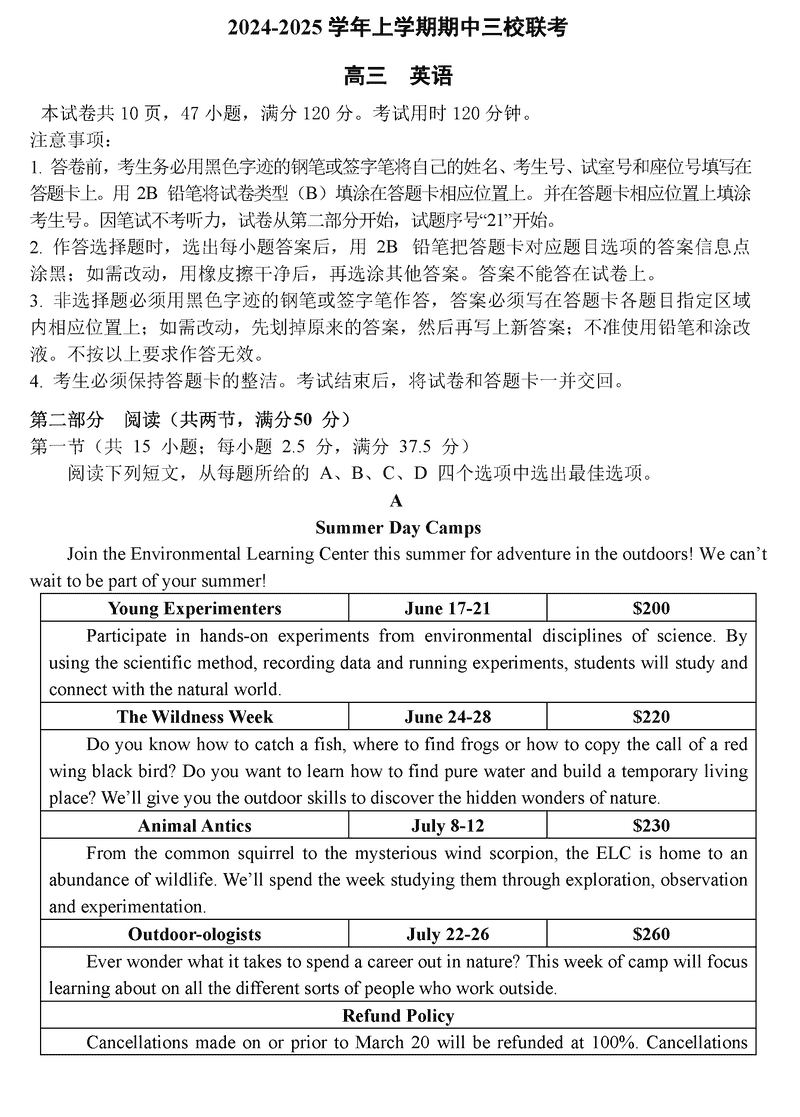 广州外国语、广大附中、铁一中学等三校024-2025学年高三上学期期中联考英语考试已于近日开考,为方便考生考后及时查看考试情况,查漏补缺、弥补不足,本文整理了试题答案解析相关信息!