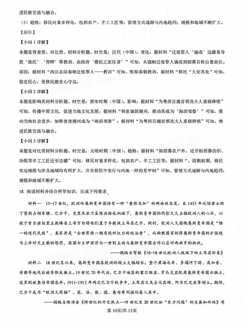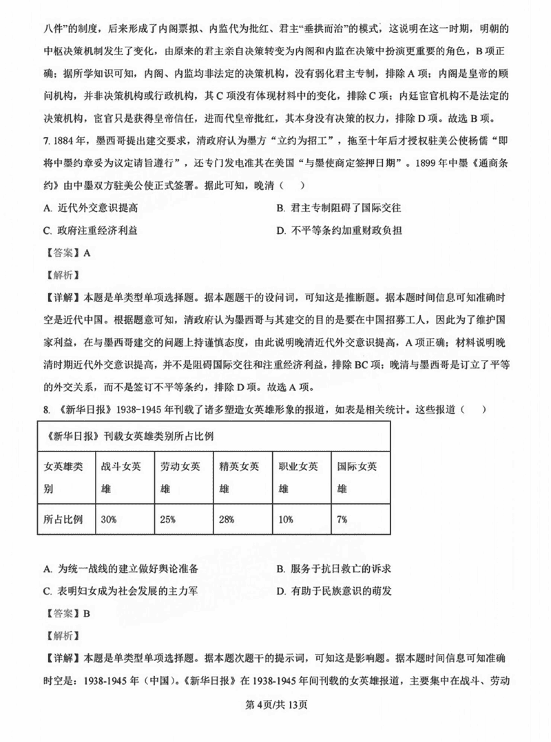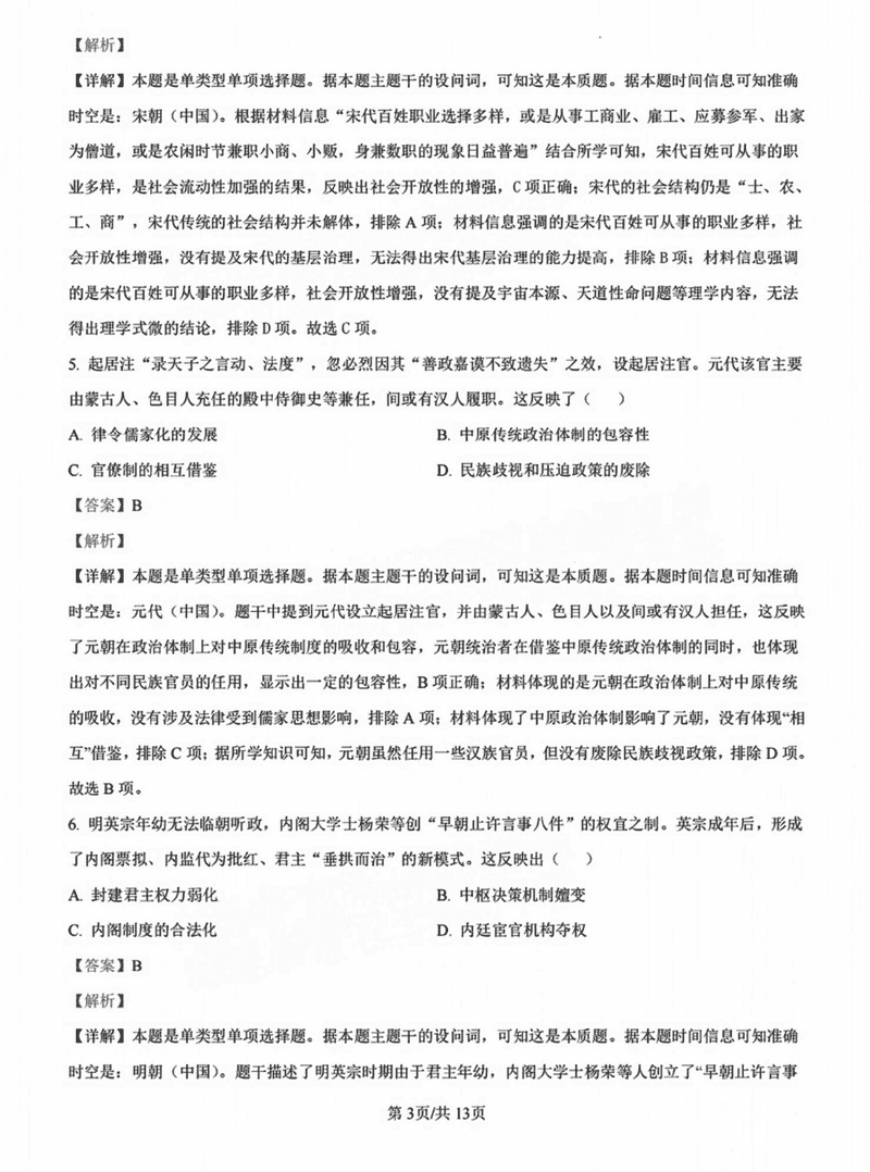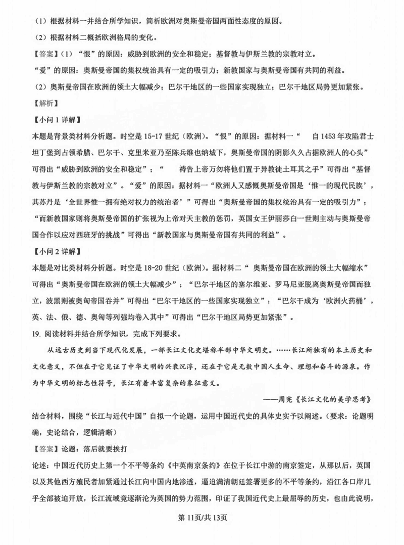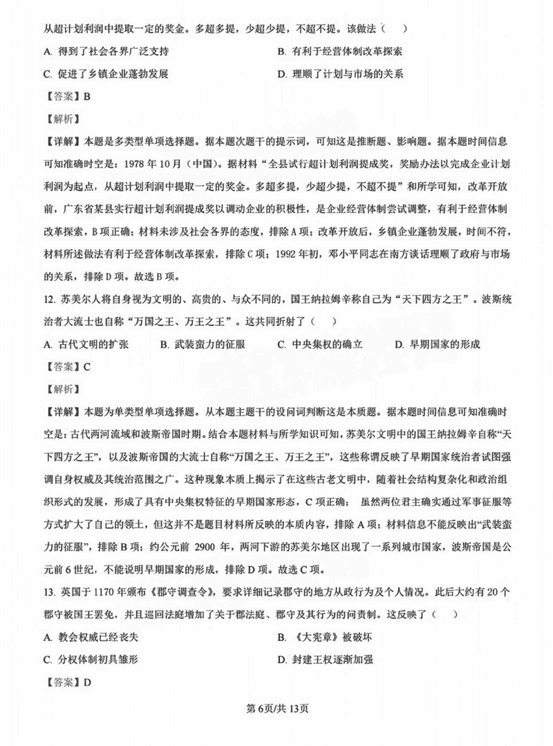 历史试题及答案解析