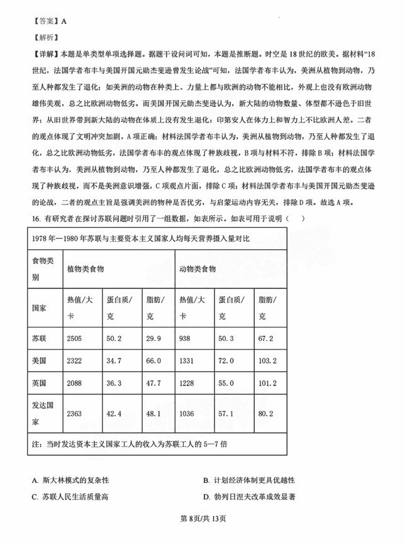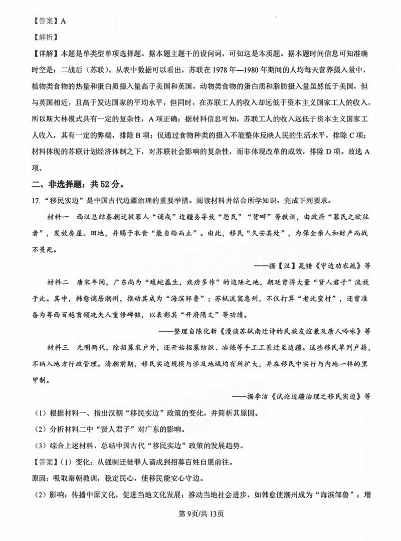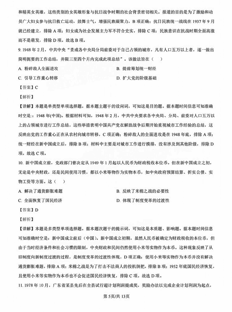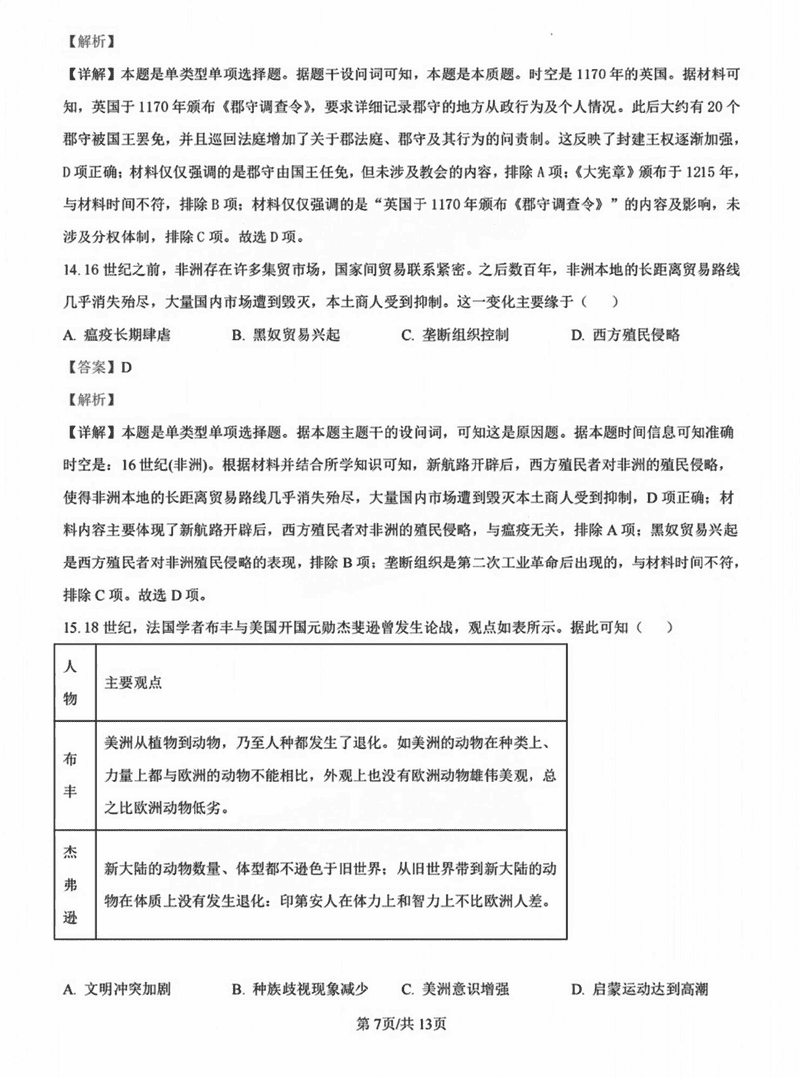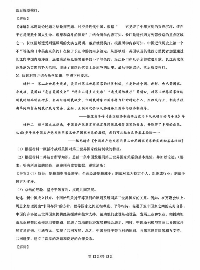 历史试题及答案解析