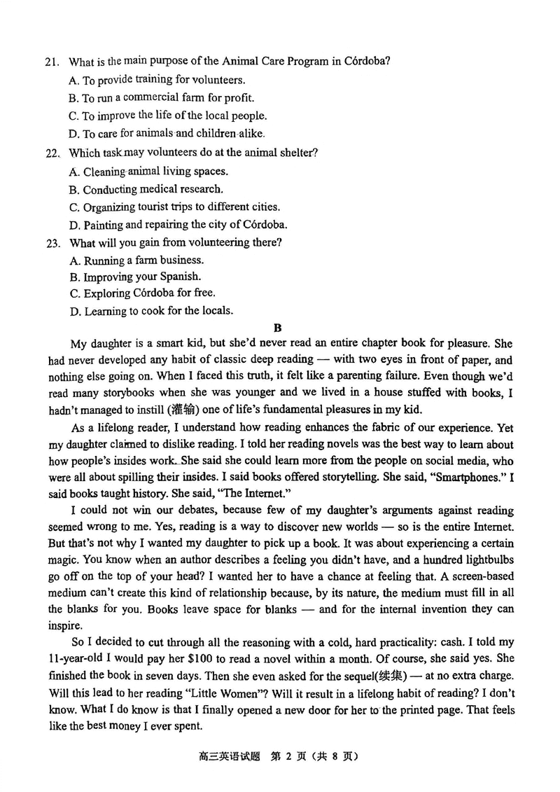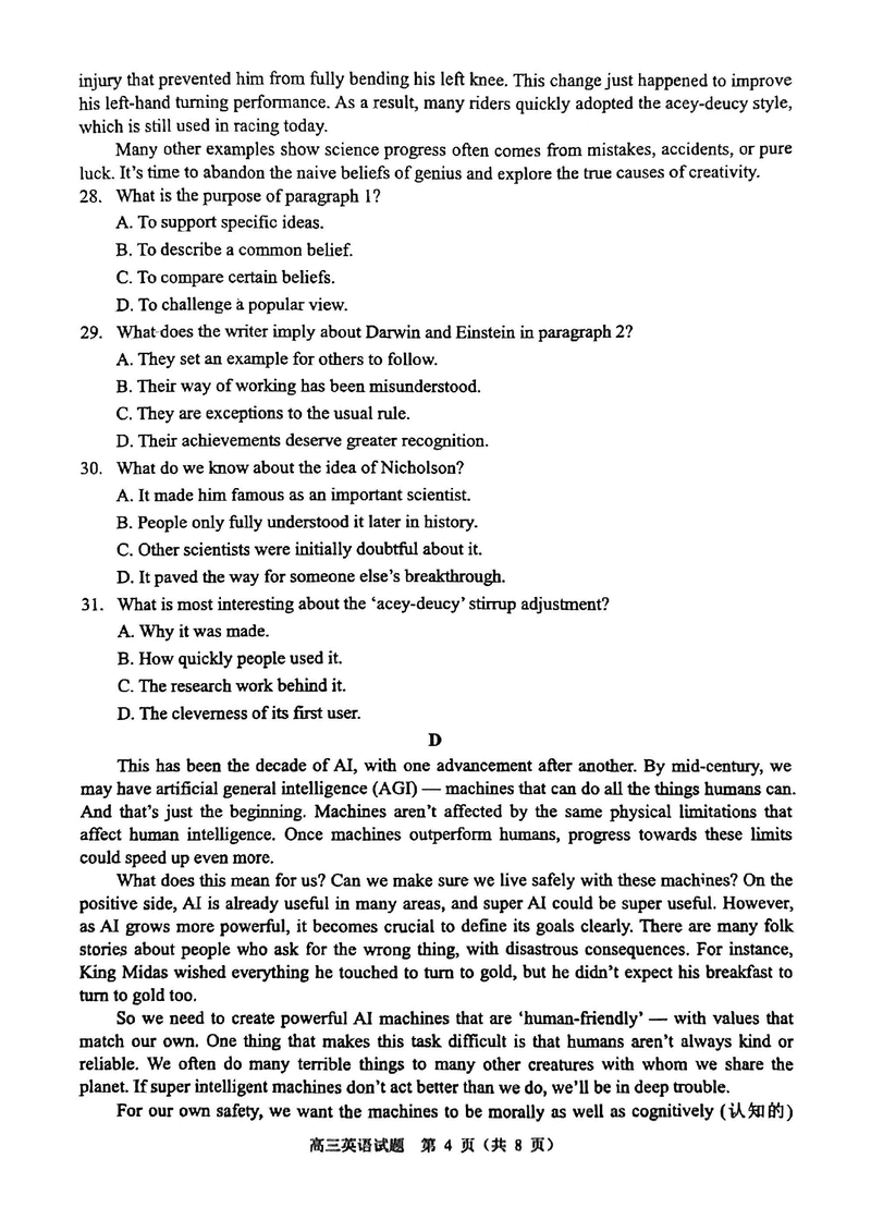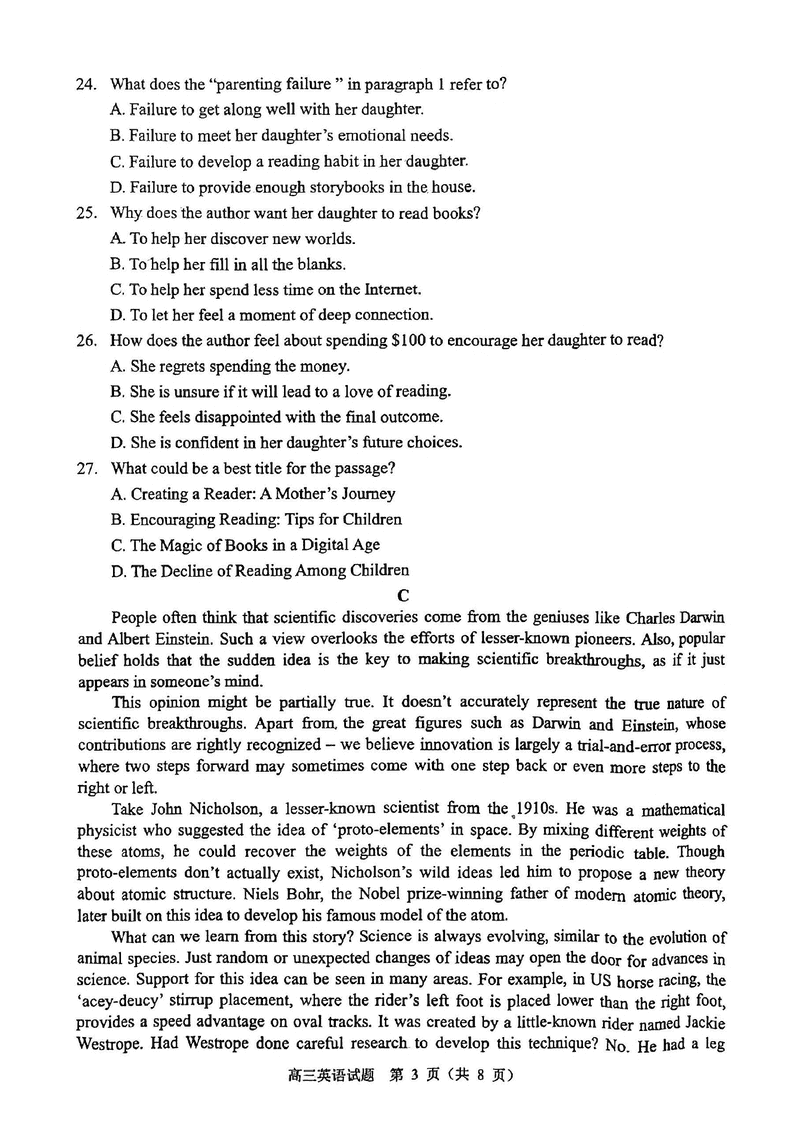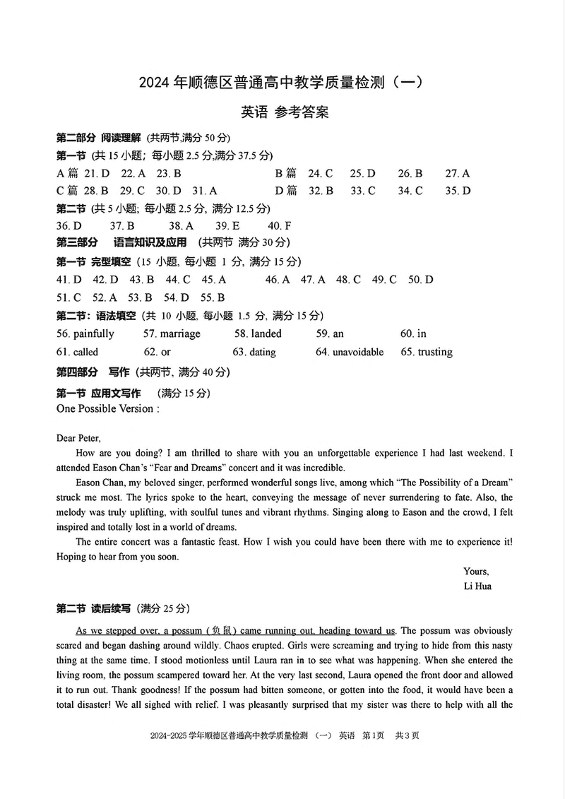 佛山顺德区2024学年高三教学质检(一)英语试题及答案
