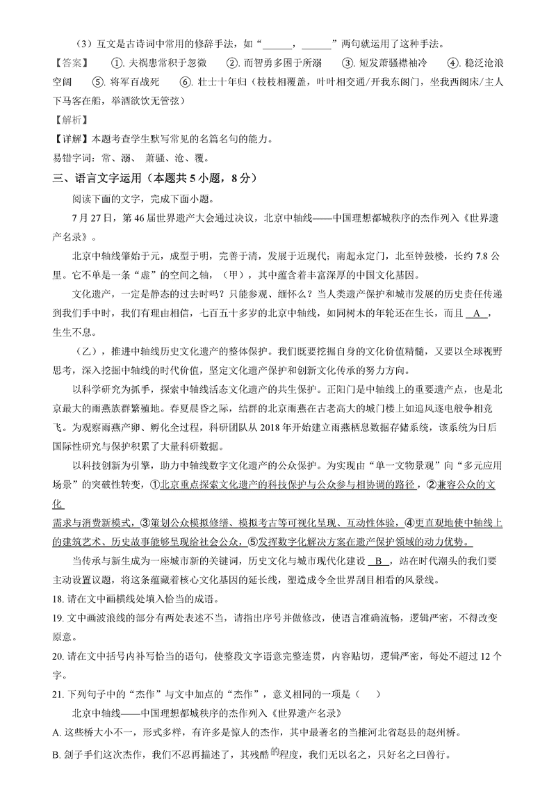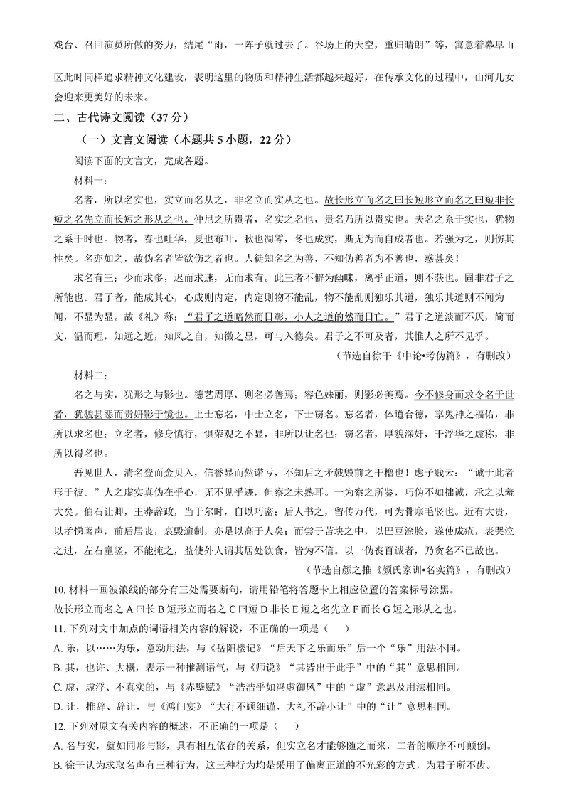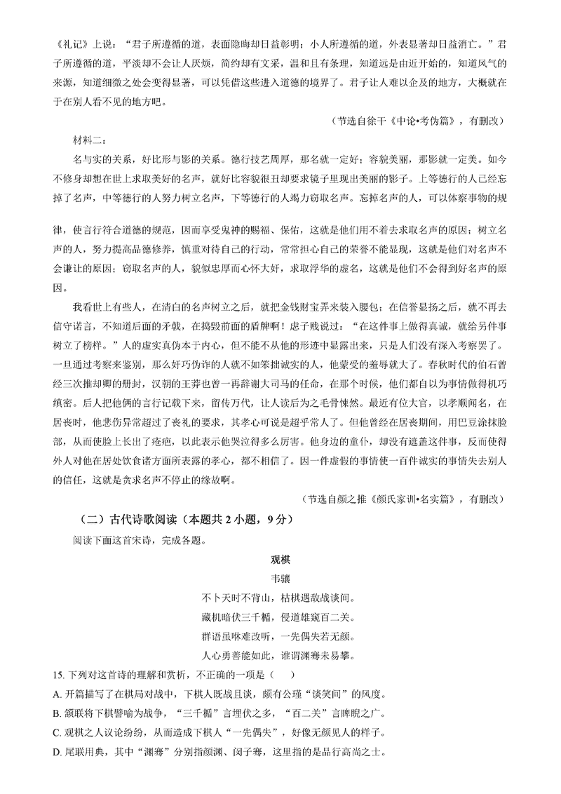 佛山顺德区2024学年高三教学质检(一)语文试题及答案