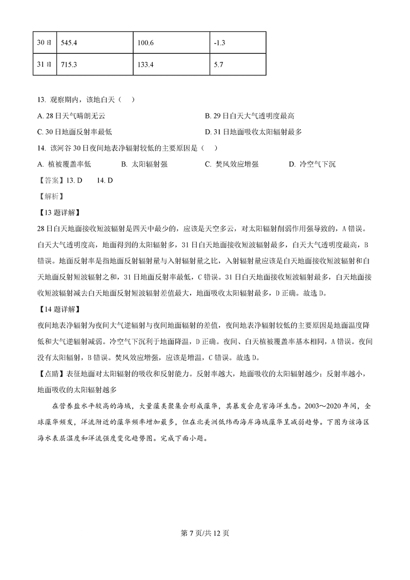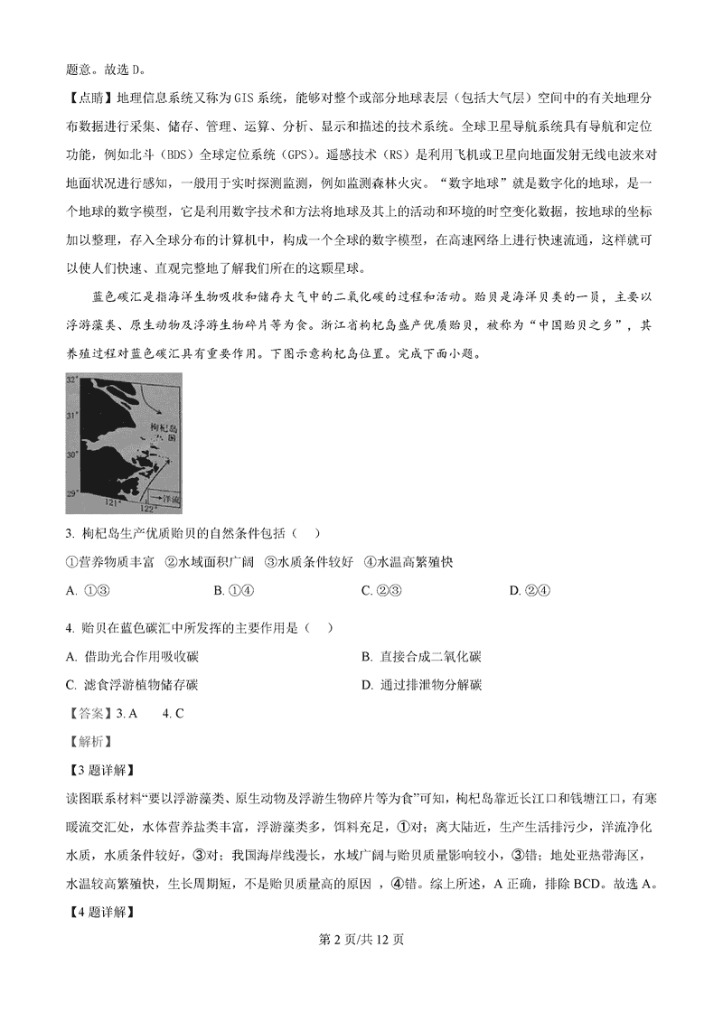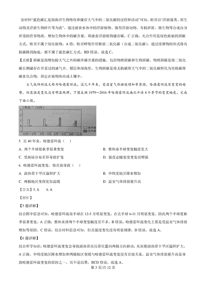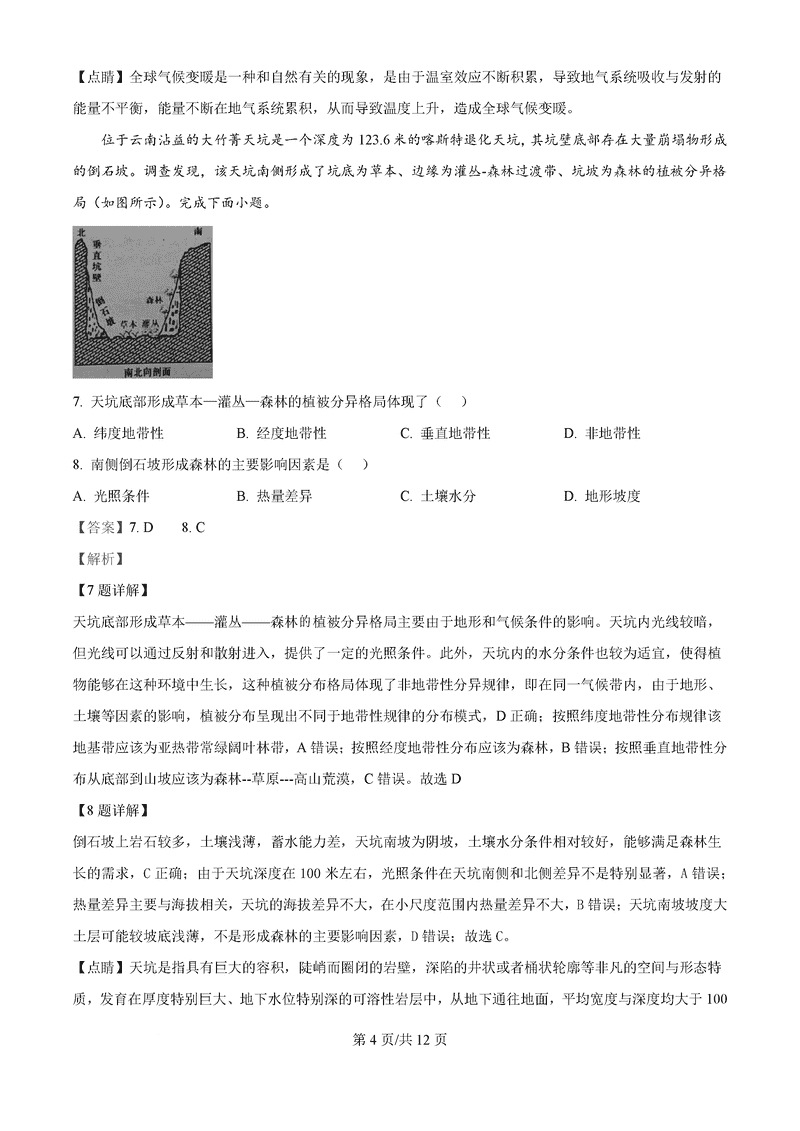 地理试题及答案解析