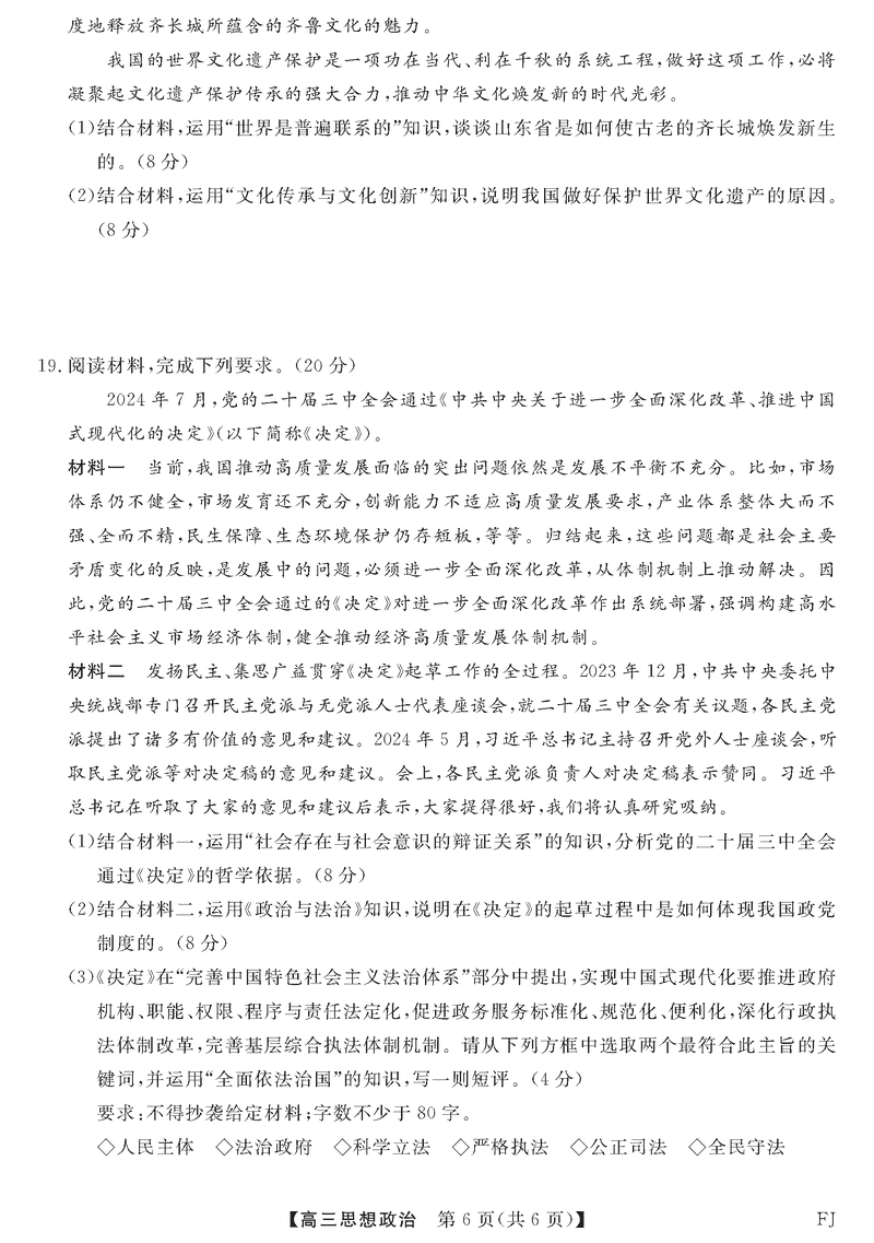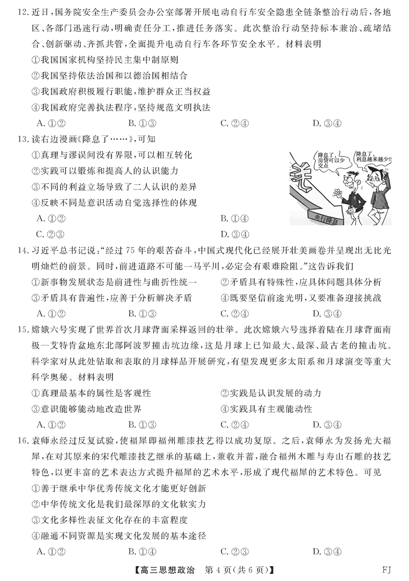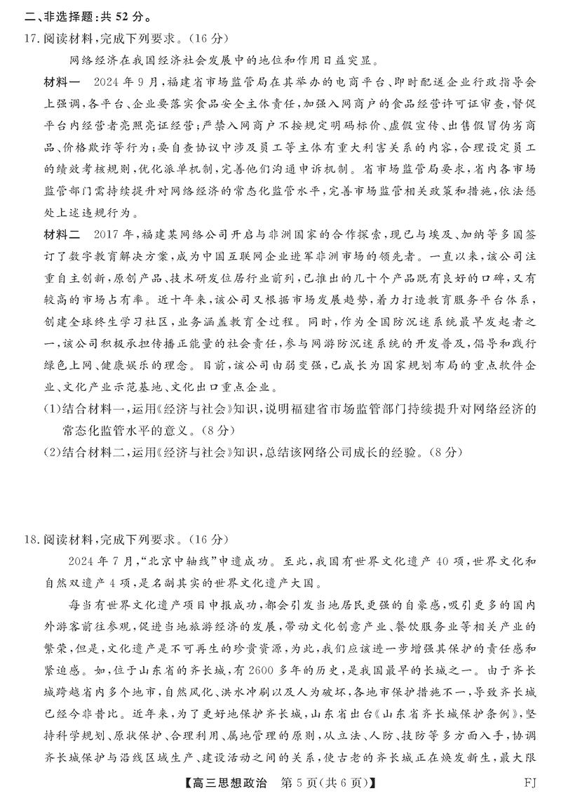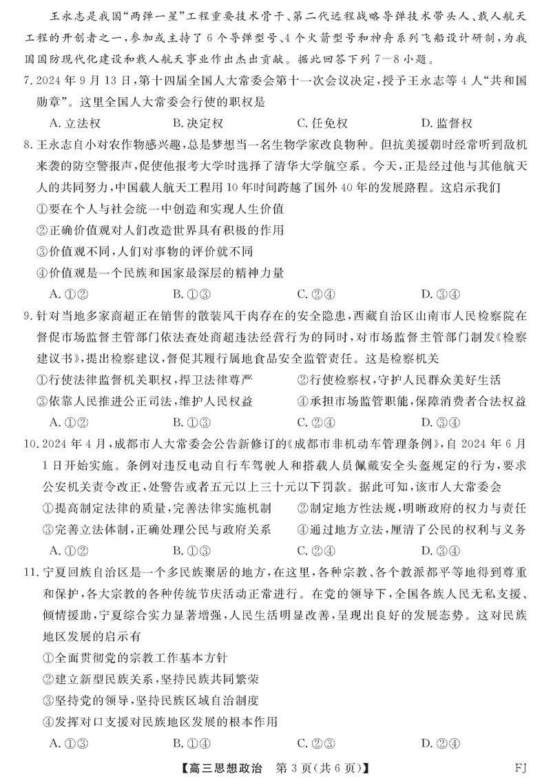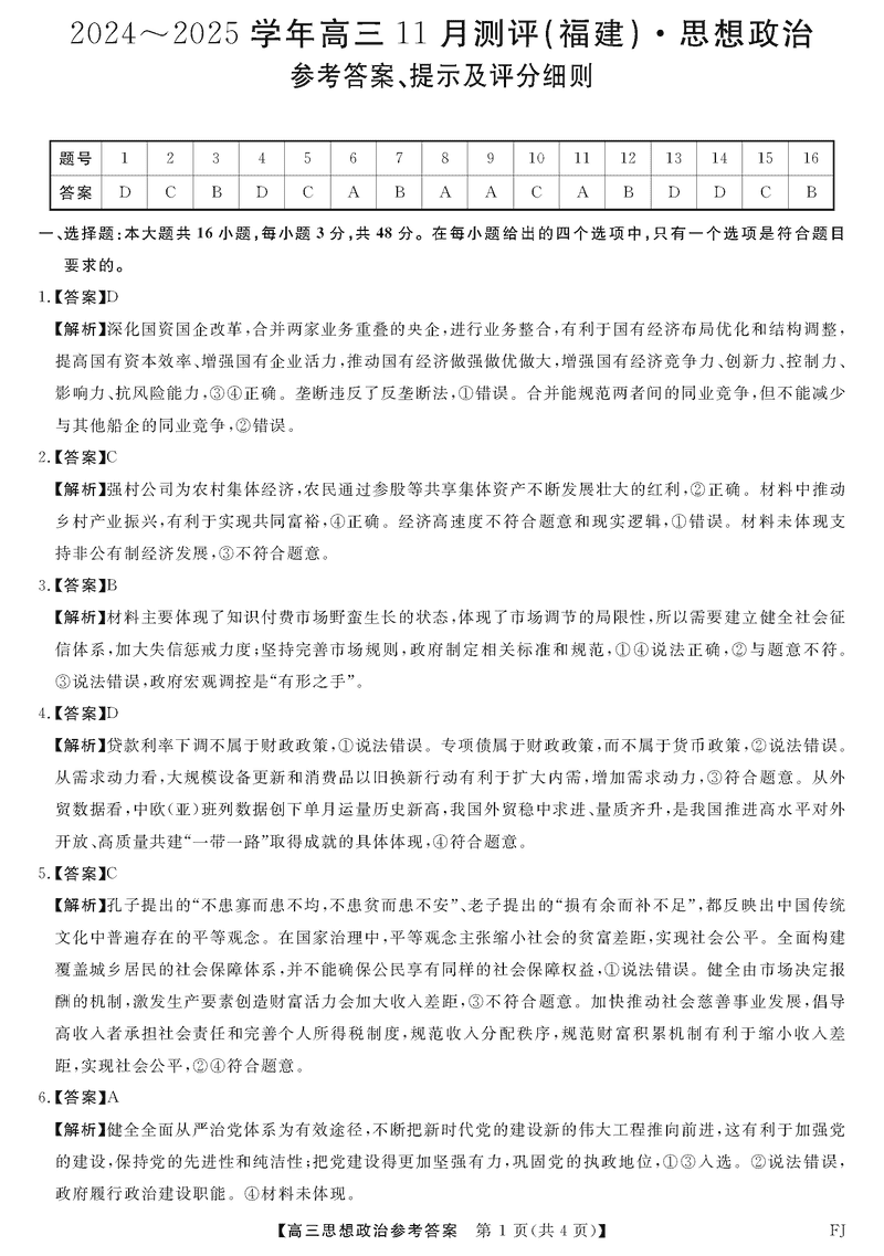 福建省2025届金科大联考高三11月测评政治试题及答案