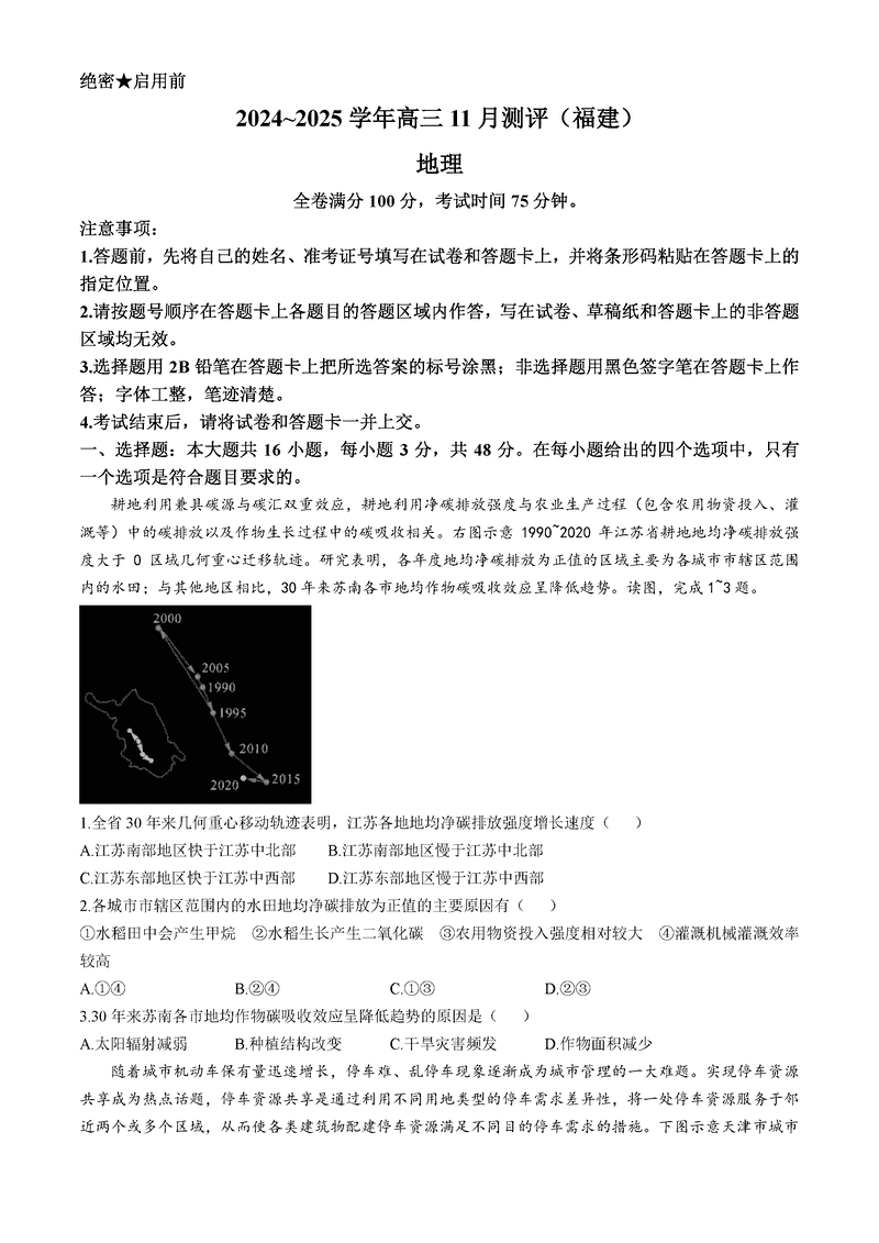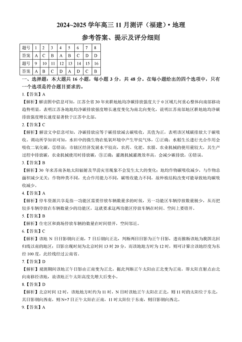 福建省2025届金科大联考高三11月测评地理试题及答案