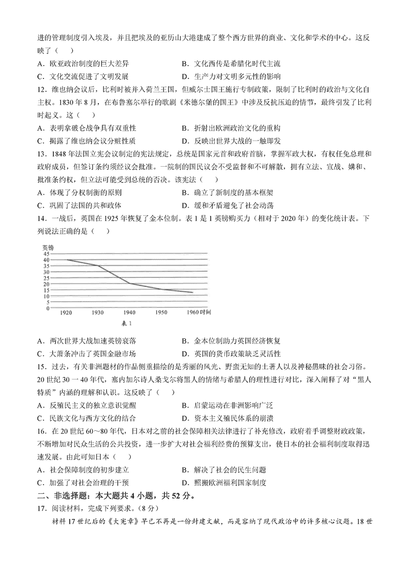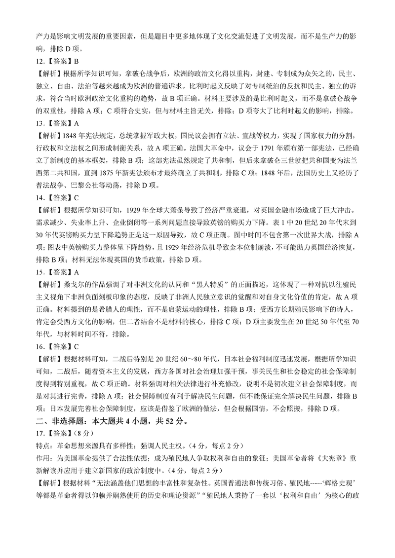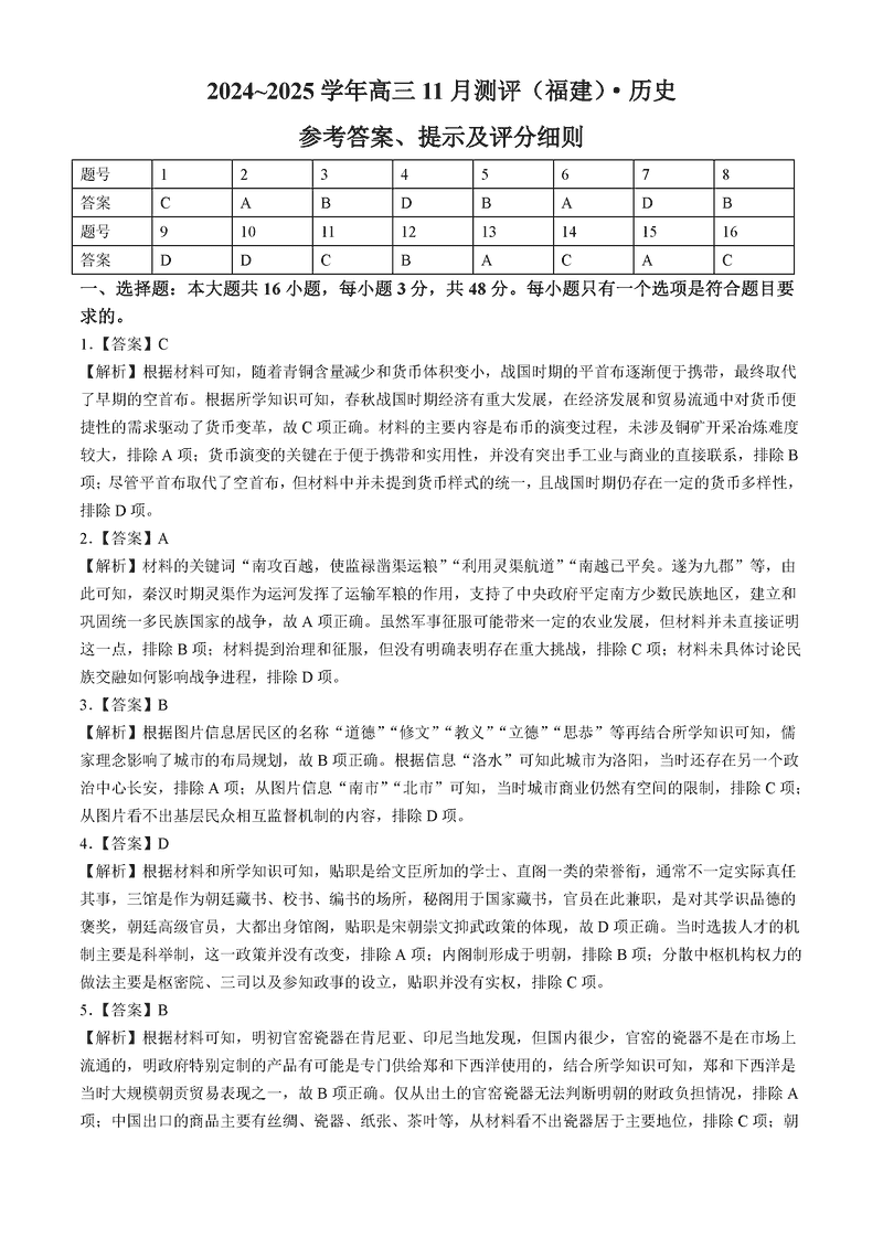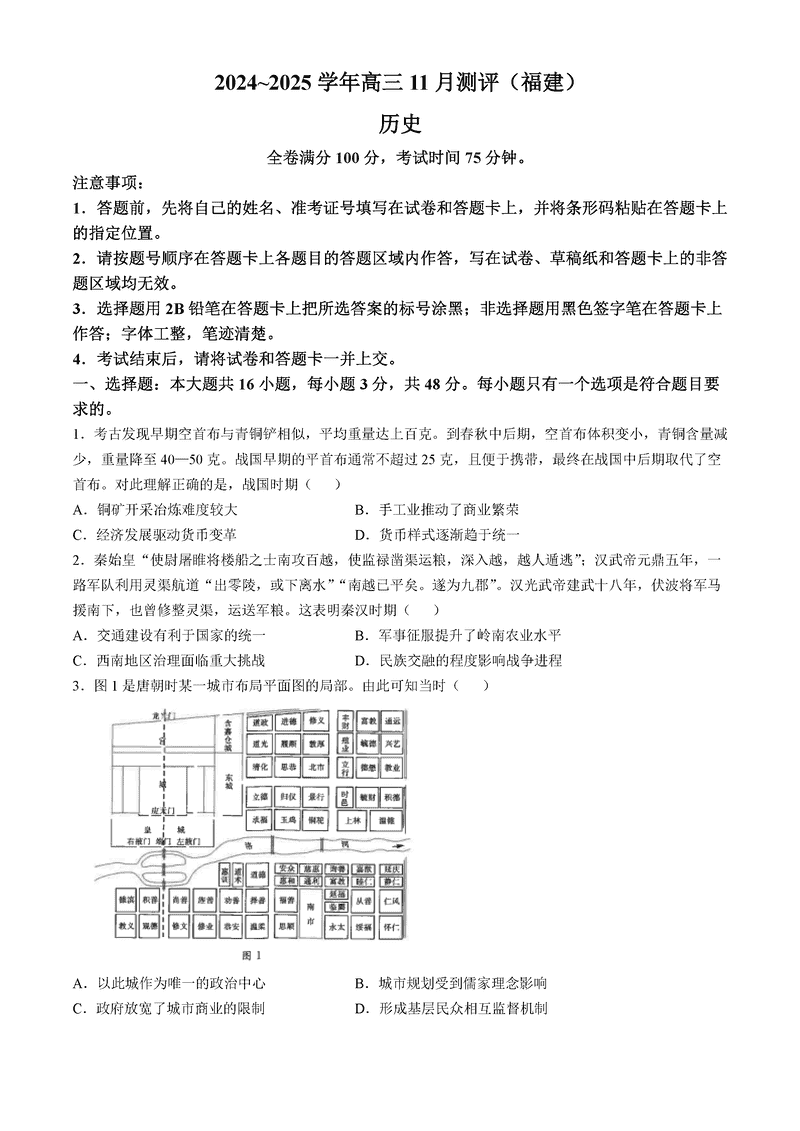 福建省2025届金科大联考高三11月测评历史试题及答案