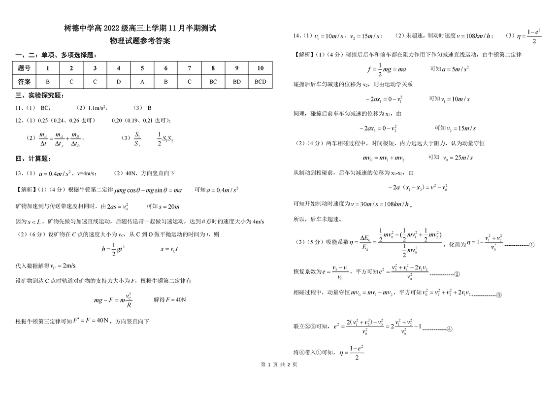 四川树德中学2024-2025学年高三上学期11月期中物理考试已于近日开考,为方便考生考后及时查看考试情况,查漏补缺、弥补不足,本文整理了试题答案解析相关信息!