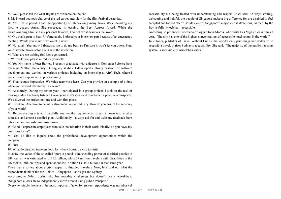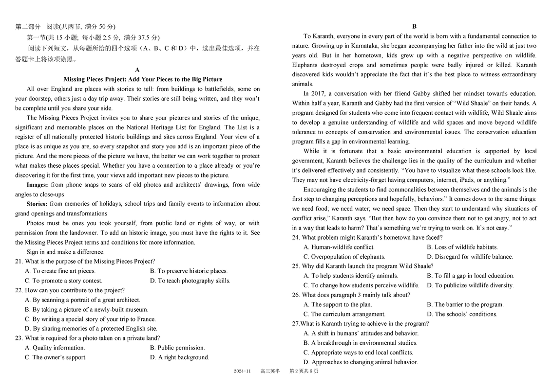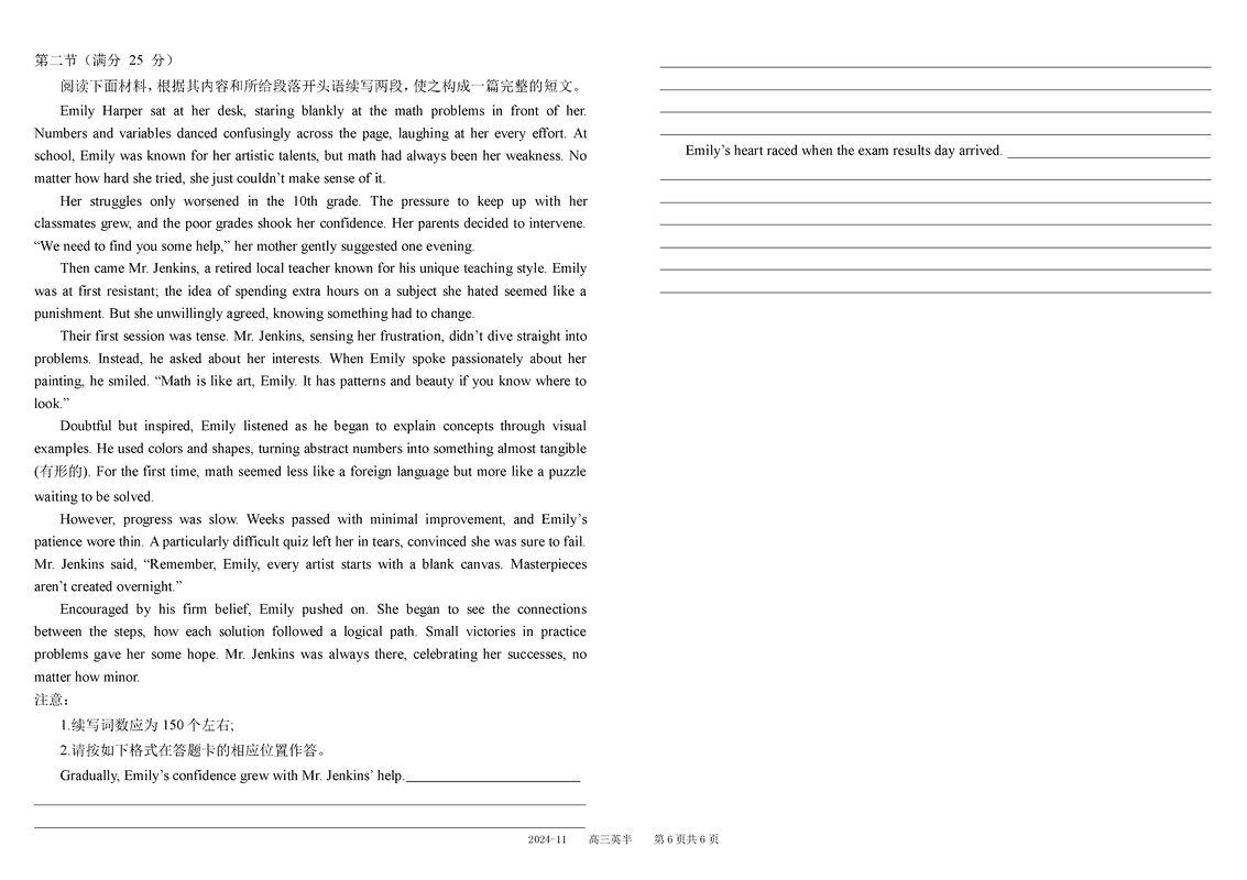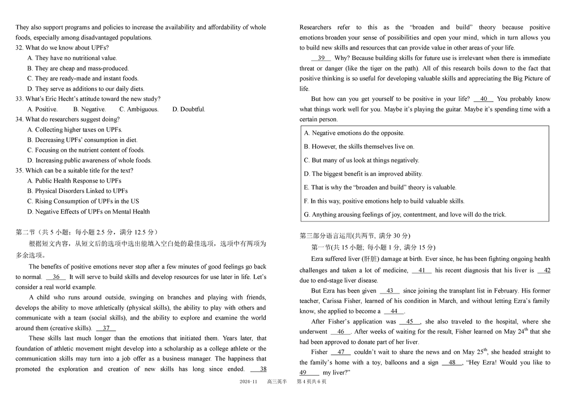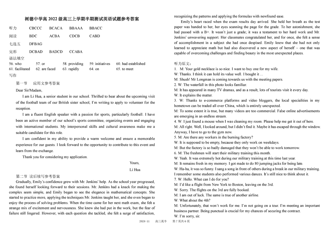 四川树德中学2025届高三上11月半期英语试题及答案