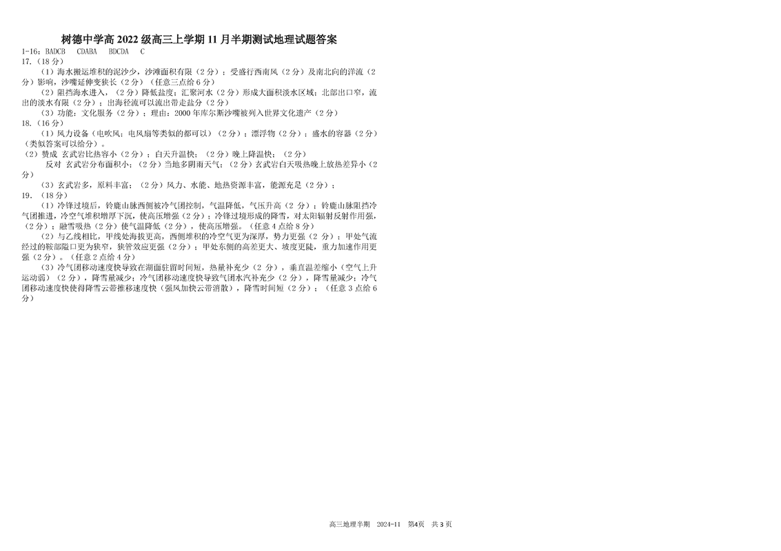 四川树德中学2024-2025学年高三上学期11月期中地理考试已于近日开考,为方便考生考后及时查看考试情况,查漏补缺、弥补不足,本文整理了试题答案解析相关信息!