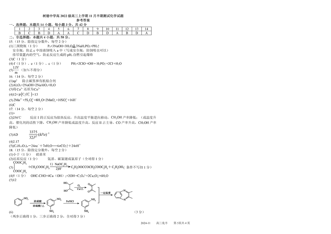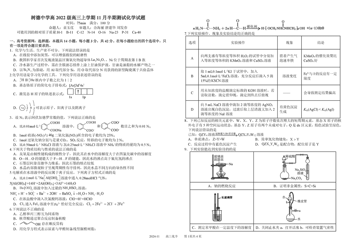 四川树德中学2024-2025学年高三上学期11月期中化学考试已于近日开考,为方便考生考后及时查看考试情况,查漏补缺、弥补不足,本文整理了试题答案解析相关信息!