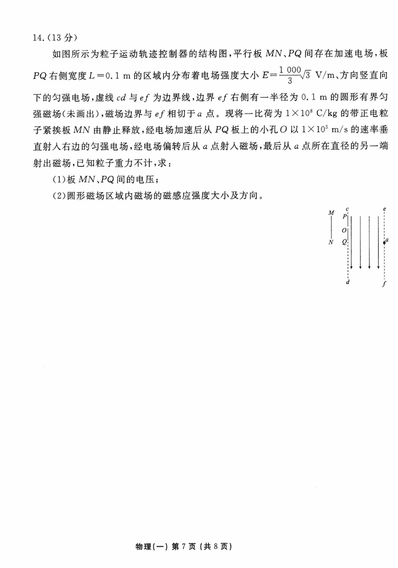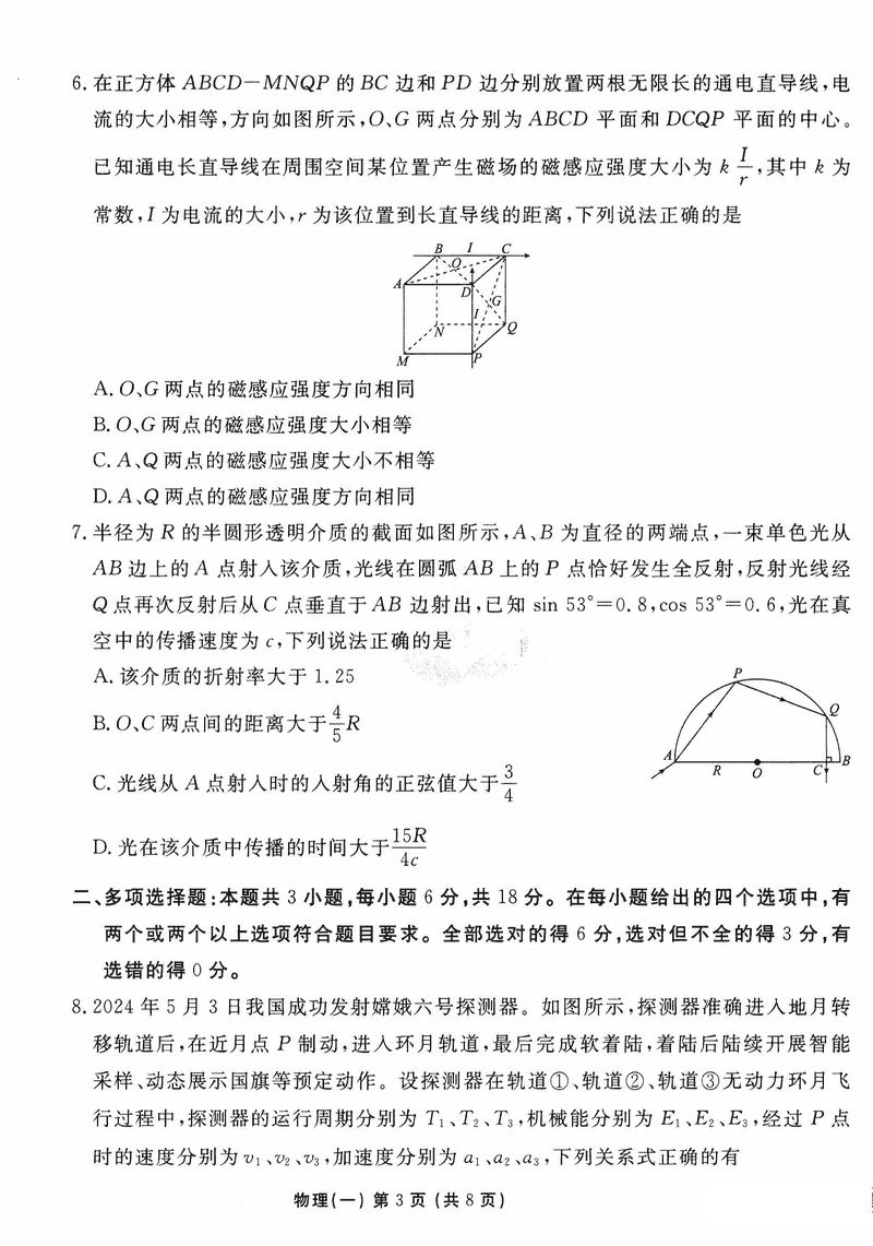 衡水金卷2025年高三学业选择考模拟试题(一)物理试题及答案