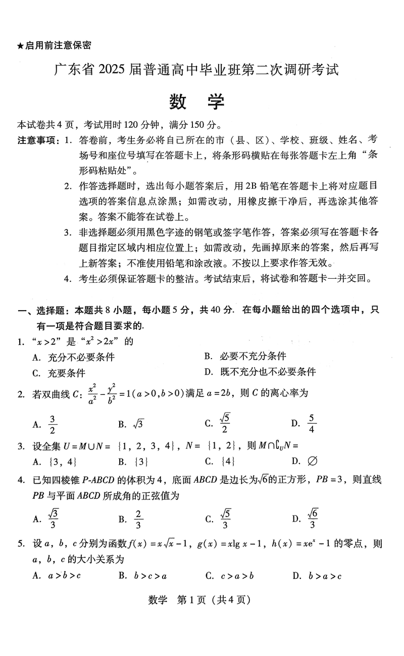 2025届广东高三第二次调研数学试题及答案 时间:2024-11-22 01:36 广东 数学试题 2025届广东高三第二次调研数学考试已于近日开考,为方便考生考后及时查看考试情况,查漏补缺、弥补不足,本文整理了试题答案解析相关信息! 汇总:2025届广东高三第二次调研考试试题及答案汇总 数学试题及答案解析