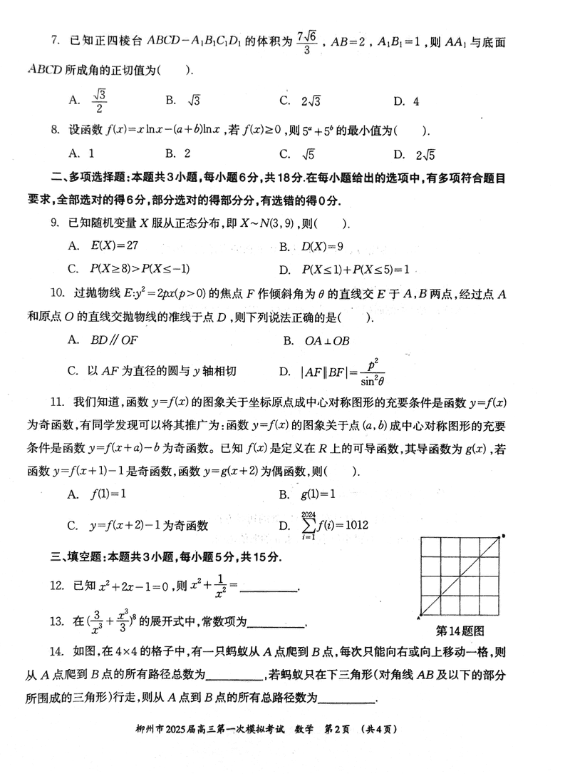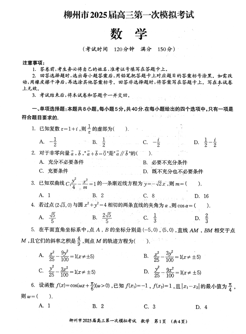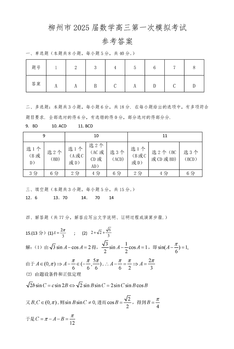 广西柳州2025届高三第一次模拟考数学试题及答案 时间:2024-11-22 01:55 广西 数学试题 广西柳州2025届高三第一次模拟考数学考试已于近日开考,为方便考生考后及时查看考试情况,查漏补缺、弥补不足,本文整理了试题答案解析相关信息! 汇总:广西柳州2025届高三第一次模拟考试试题及答案汇总 数学试题及答案解析