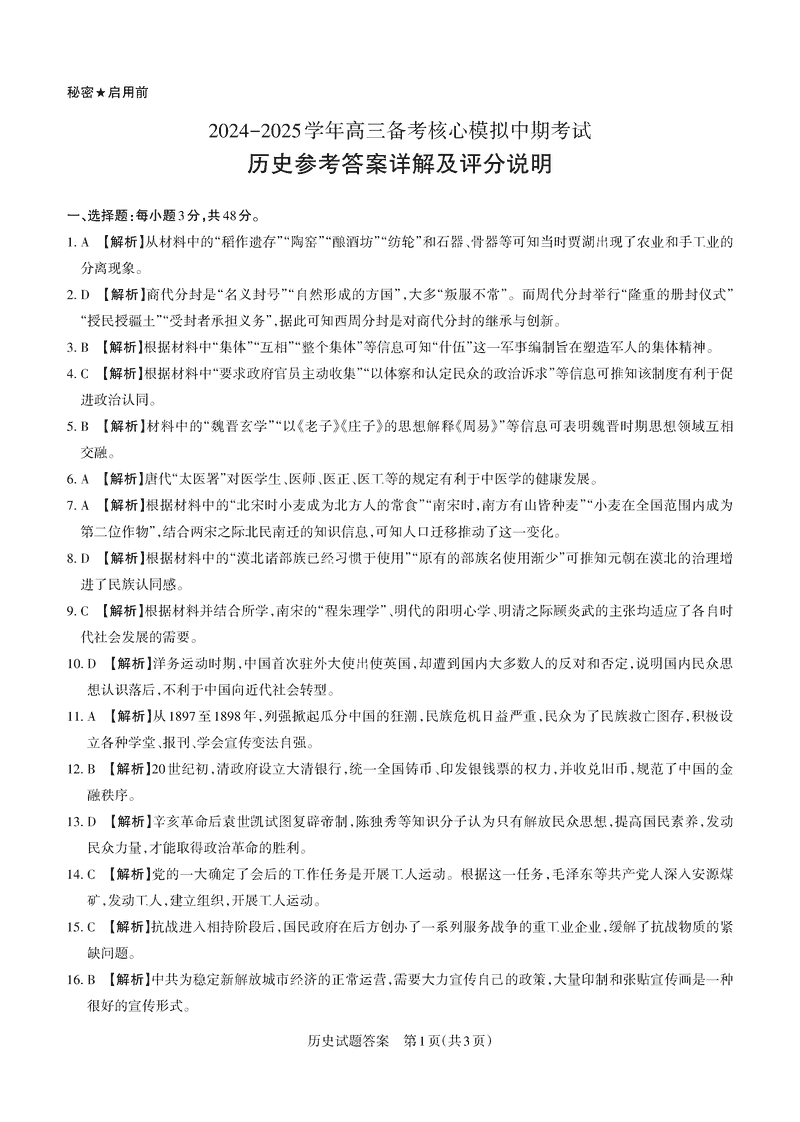 山西思而行2024-2025学年高三备考核心模拟中期历史考试已于近日开考,为方便考生考后及时查看考试情况,查漏补缺、弥补不足,本文整理了试题答案解析相关信息!