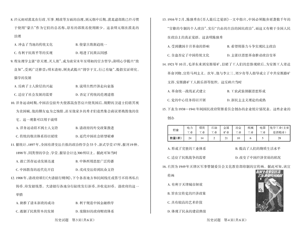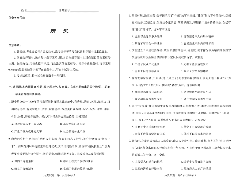 历史试题及答案解析