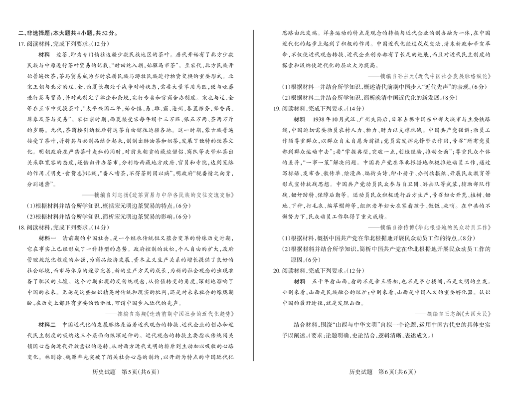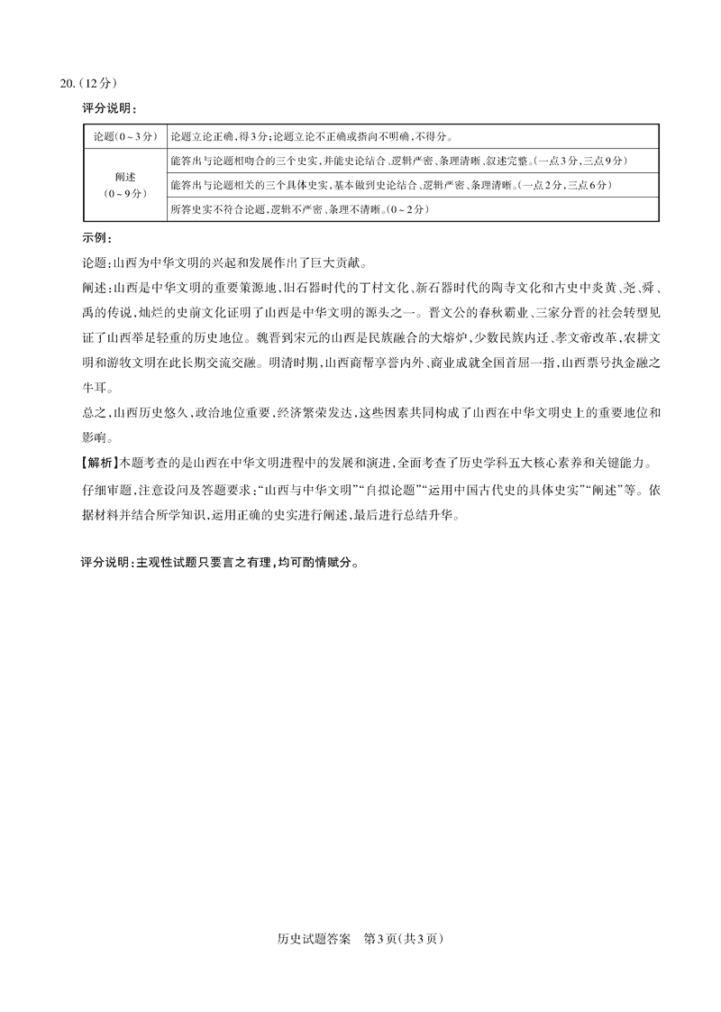 山西 文综试题