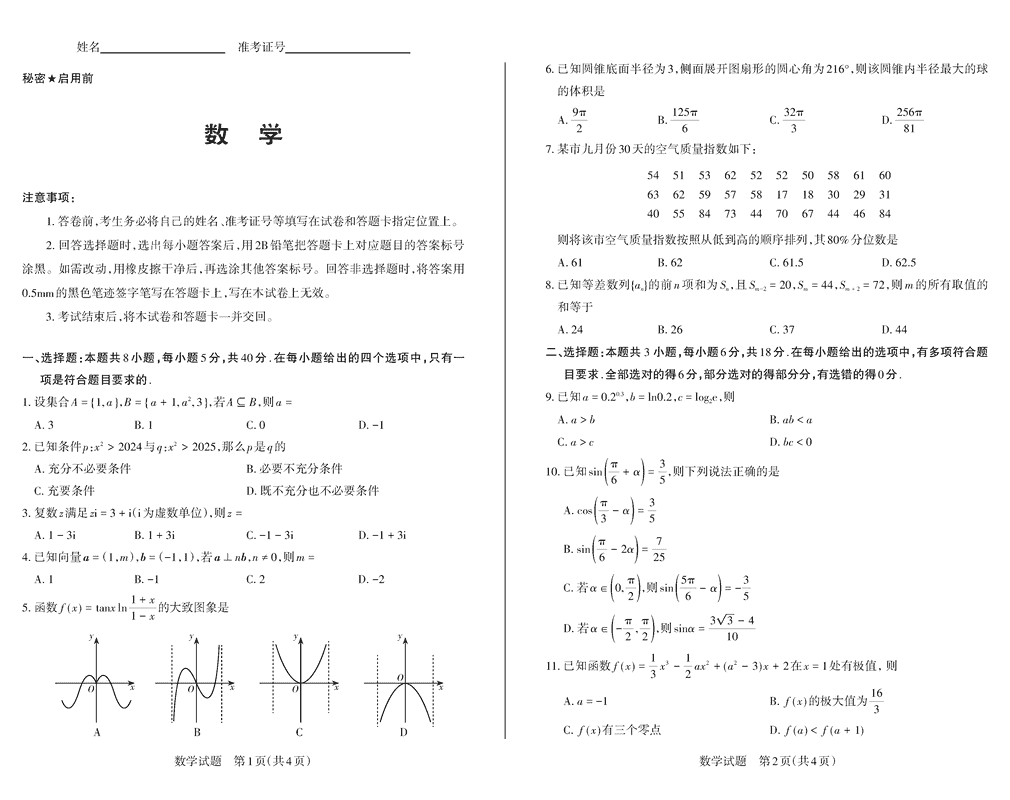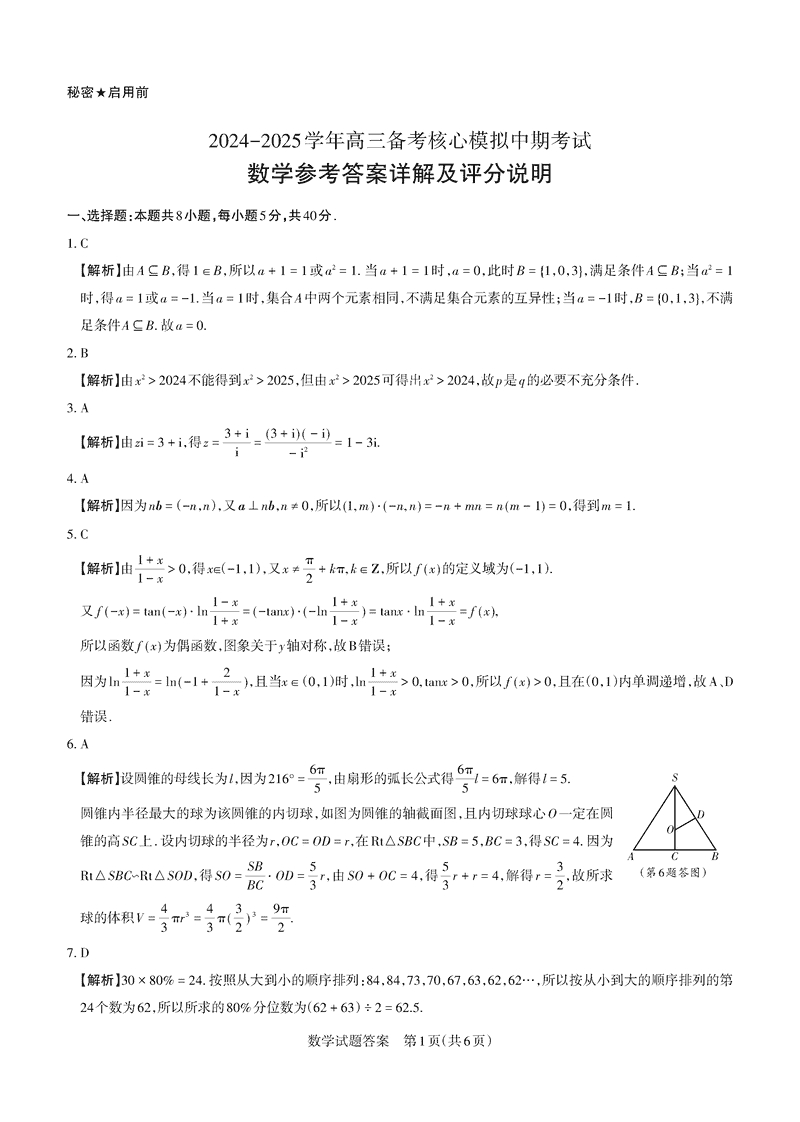 山西思而行2025届高三备考核心模拟中期数学试题及答案
