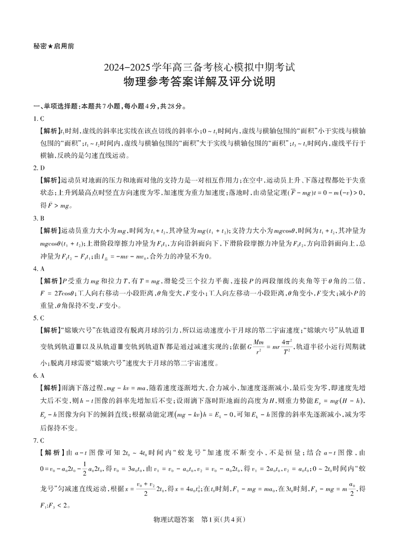 山西思而行2024-2025学年高三备考核心模拟中期物理考试已于近日开考,为方便考生考后及时查看考试情况,查漏补缺、弥补不足,本文整理了试题答案解析相关信息!