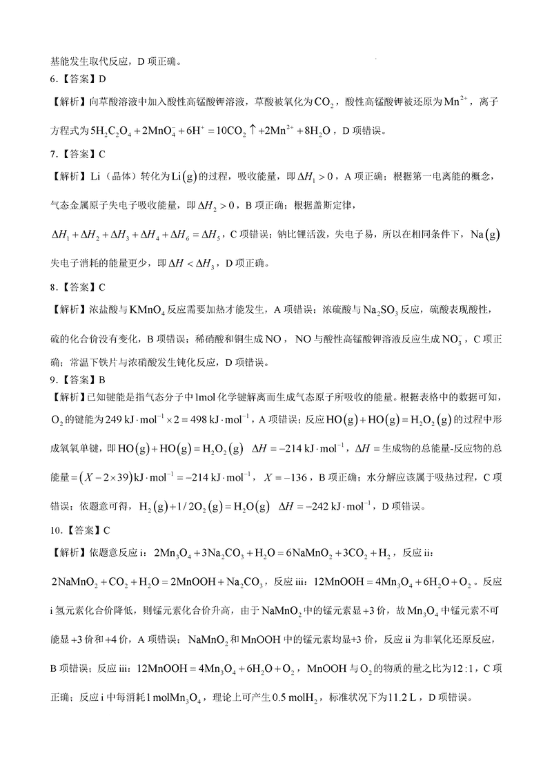 湖南三湘名校教育联盟2025届高三第二次大联考化学试题及答案