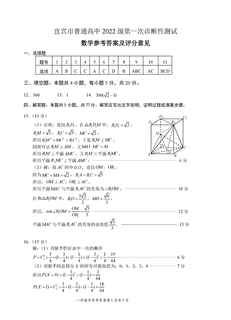宜宾一诊2025届高三第一次诊断考数学试题及答案